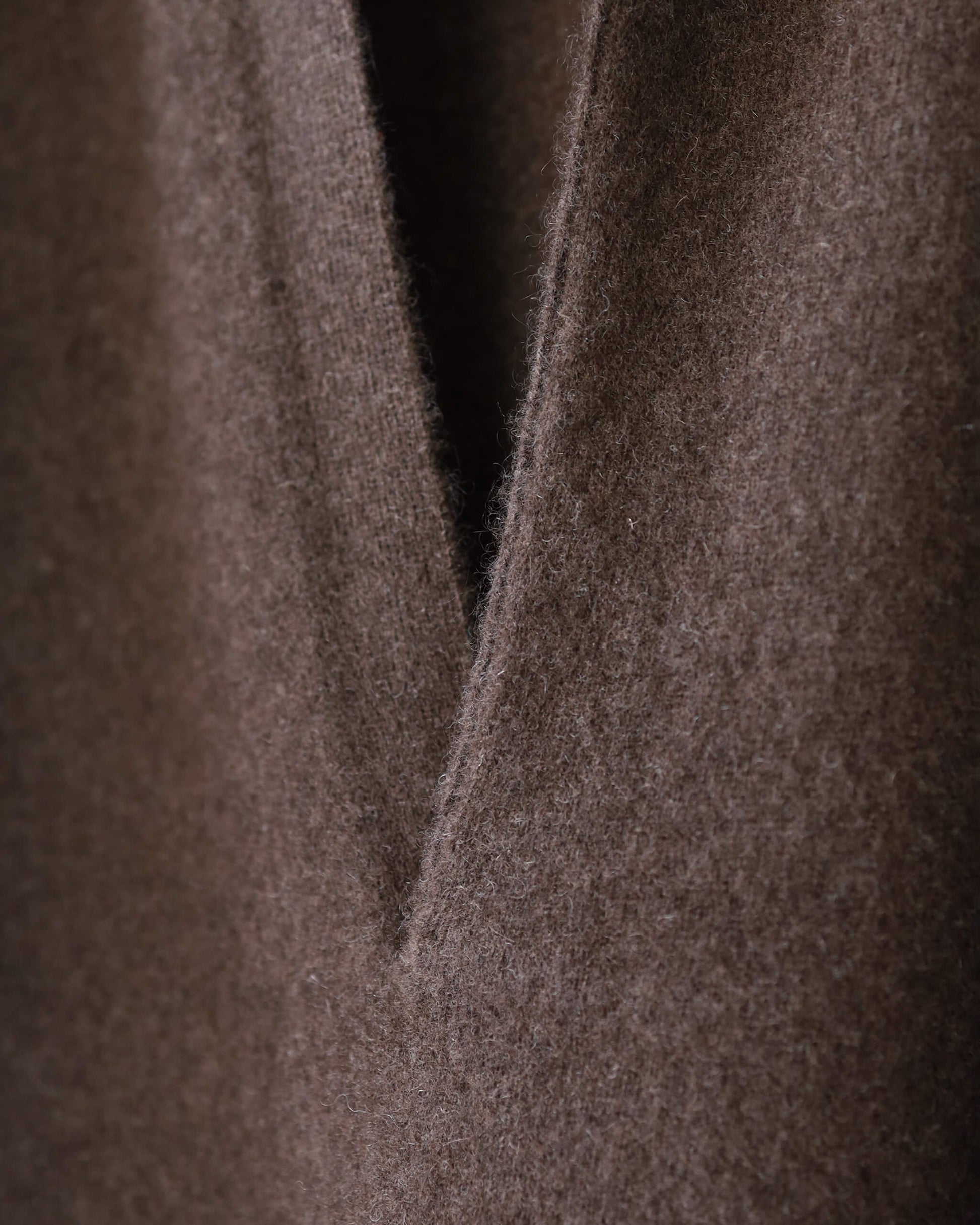 それにより、定番の YAK に比べて「光沢や滑らかさが強いながら膨らみも感じられる」糸に仕上げています。YAK らしい色合いながら光の反射や色の奥行も含めてまた別の YAK の良さを感じられます。この質感と薄さの YAK 100% 素材は他ではなかなか出会えないのではないかと思っています。