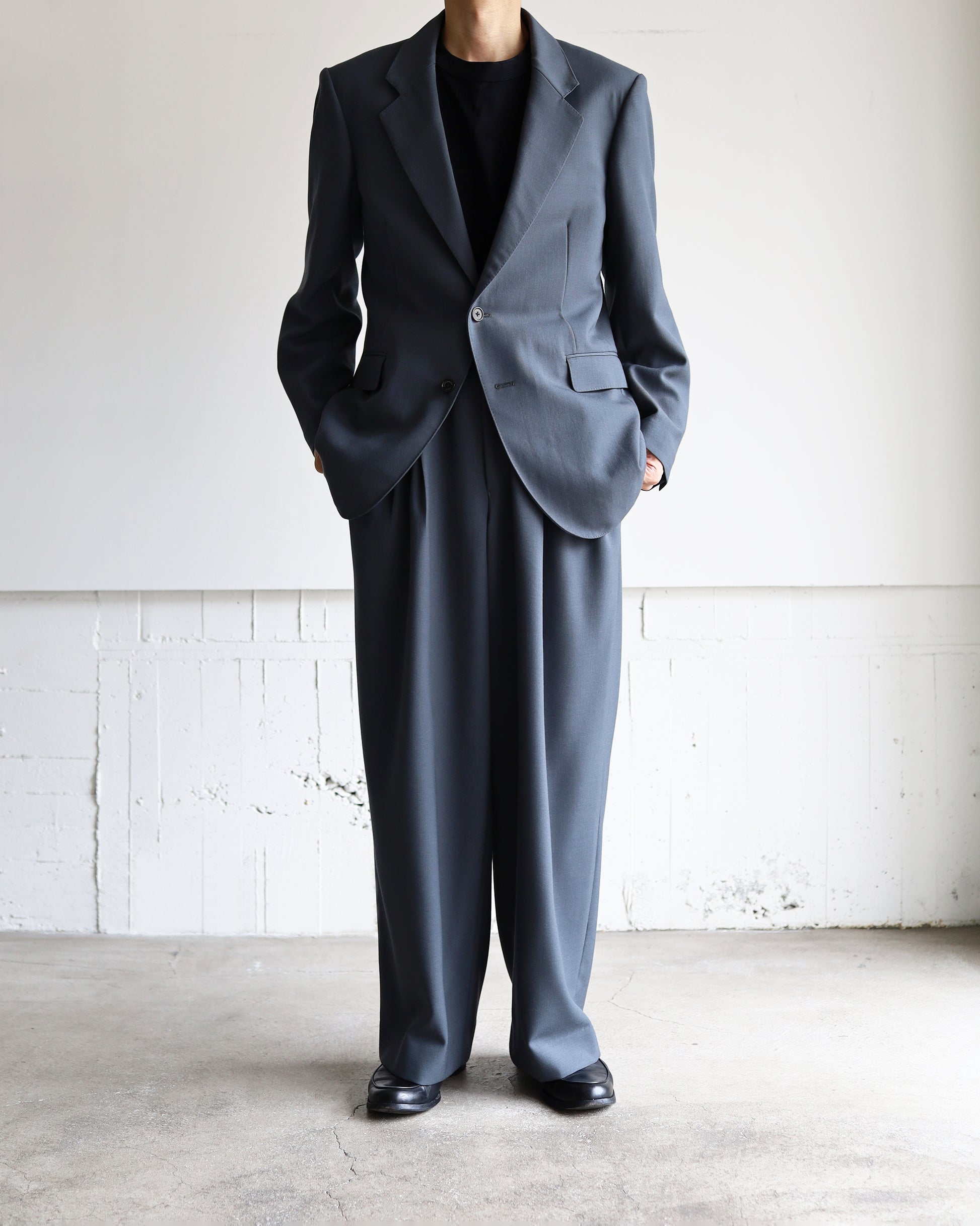 ラペルの返りも丁寧に仕上げ、フラワーホールや胸ポケットの装飾を削ぎ落としたことにより、フォルムの美しさを際立たせた1着です。