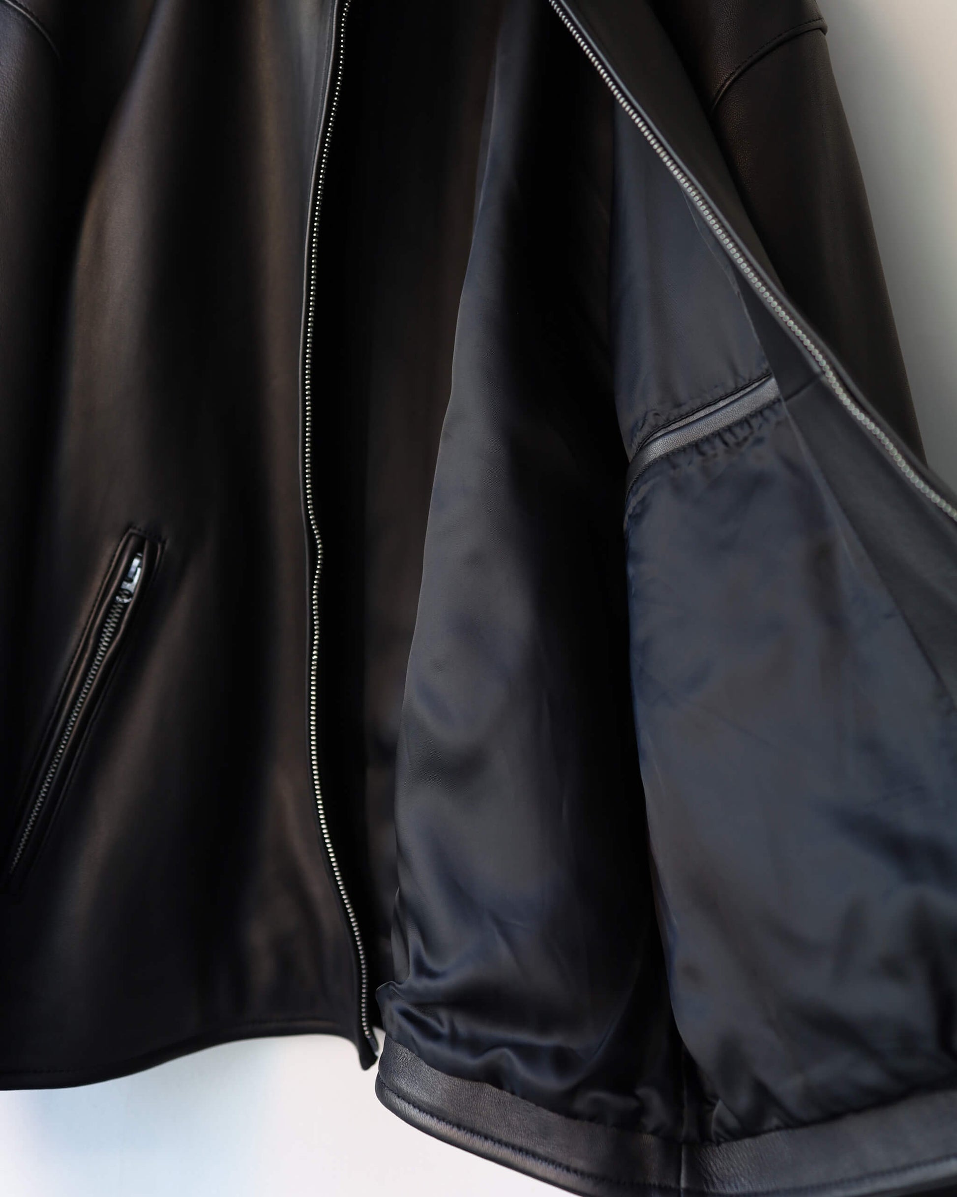 装飾を削ぎ落としたすっきりとしたデザインと柔らかなフォルムにより、レザージャケットが持つ固さを払拭し、まろやかに仕上げています。