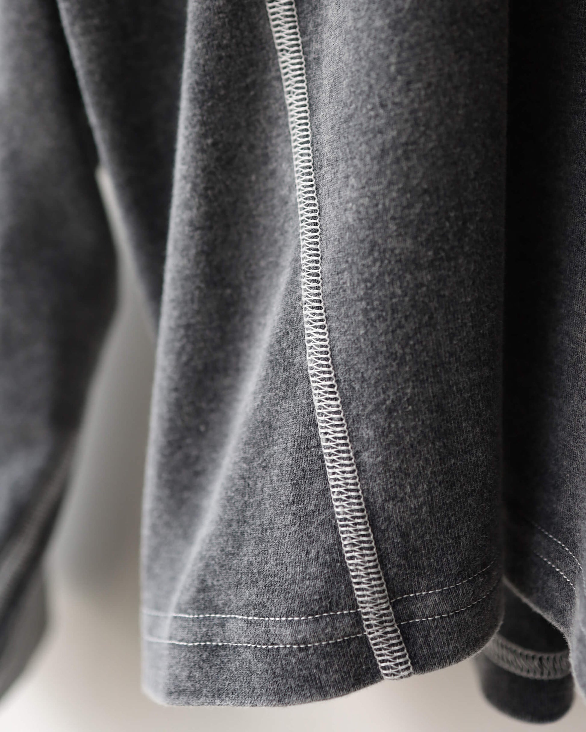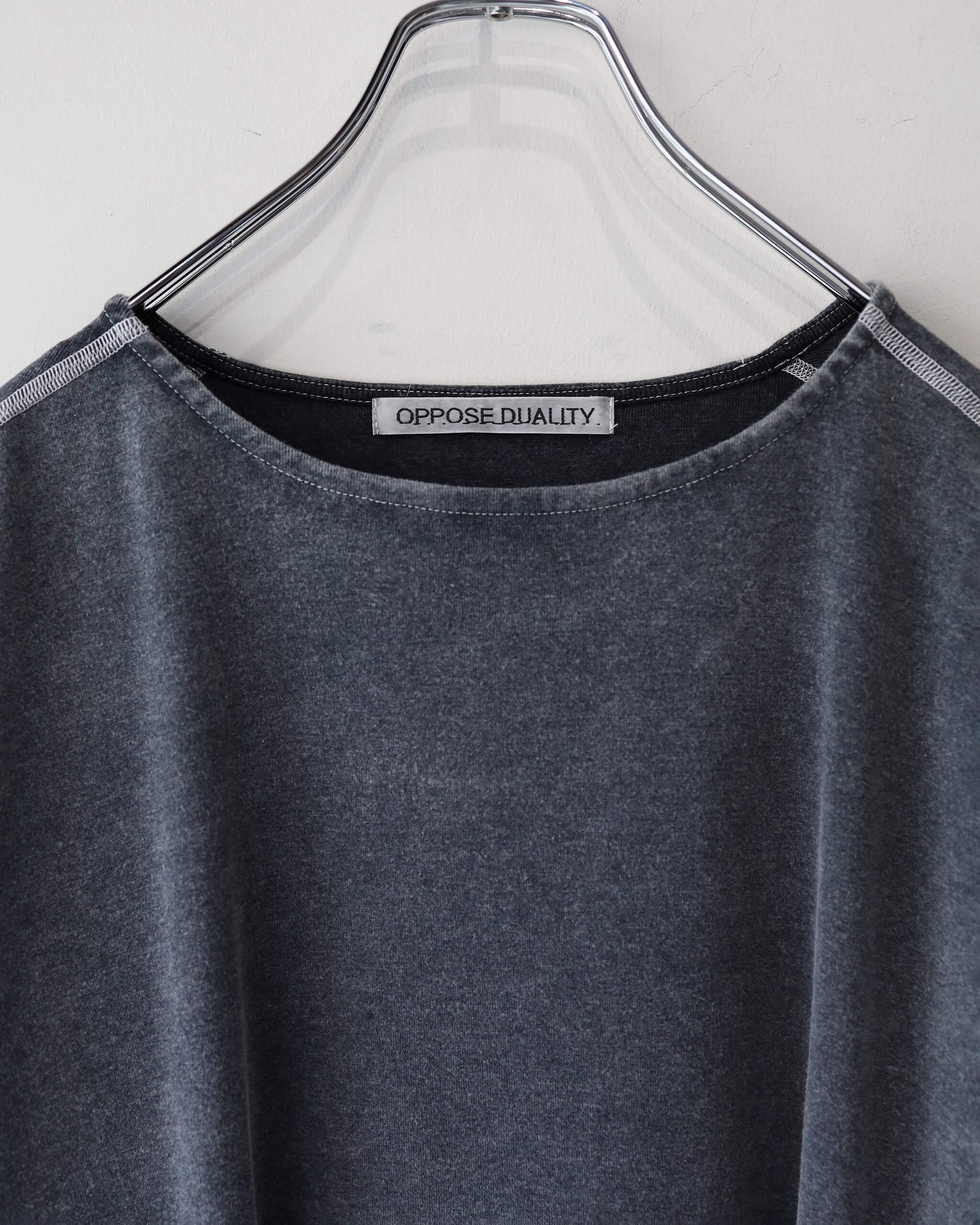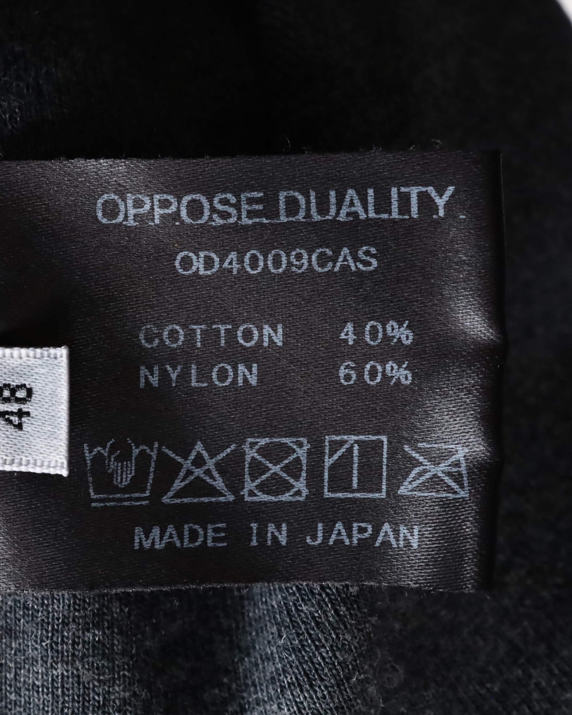 変形ラグランスリーブの設計による立体的なフォルムが OPPOSE DUALITY らしい1枚です。
