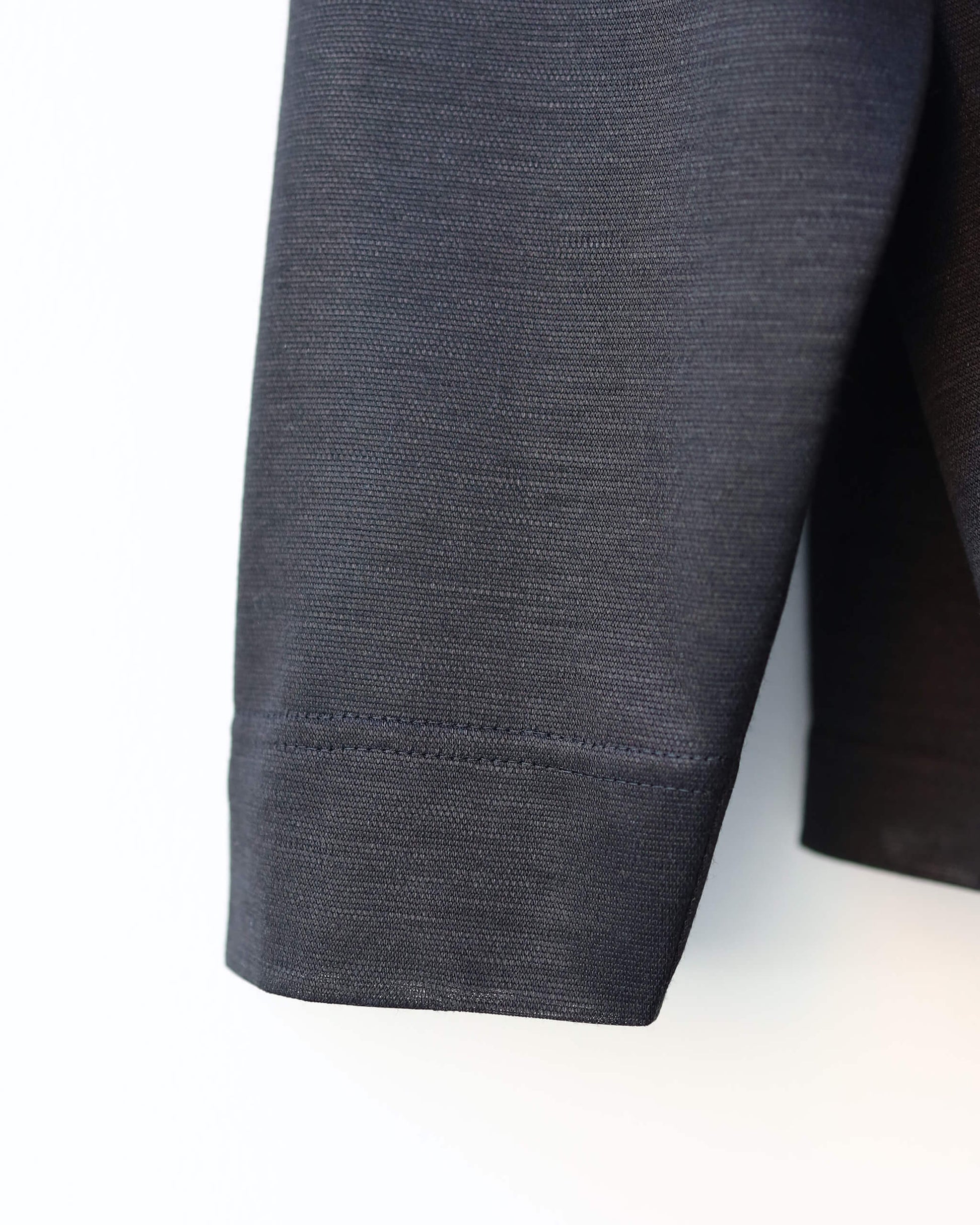 100/-ラミーと120/-シルクを双糸にした高級糸を使用。光沢がありながら透け感と清涼感も持ちあわせています。