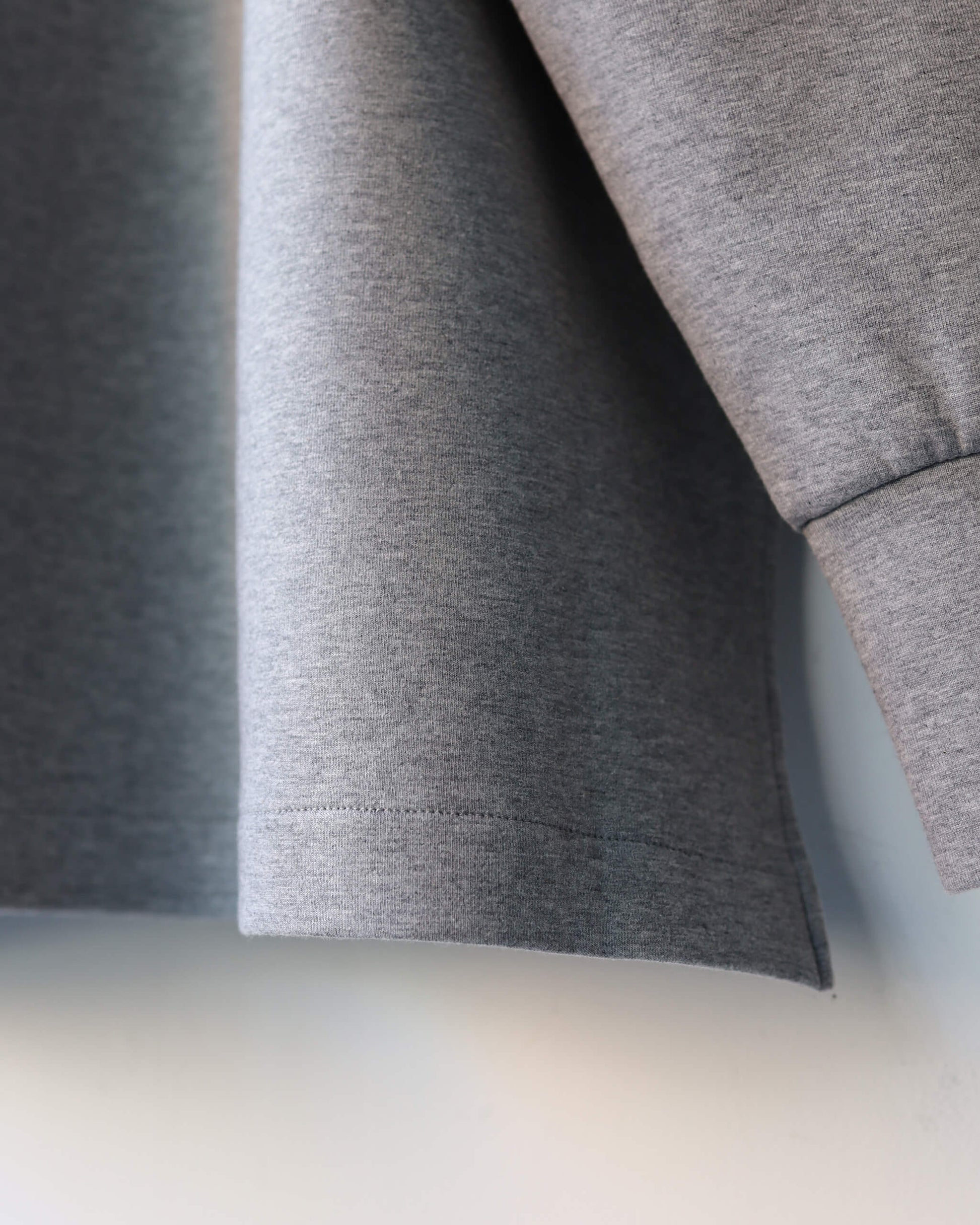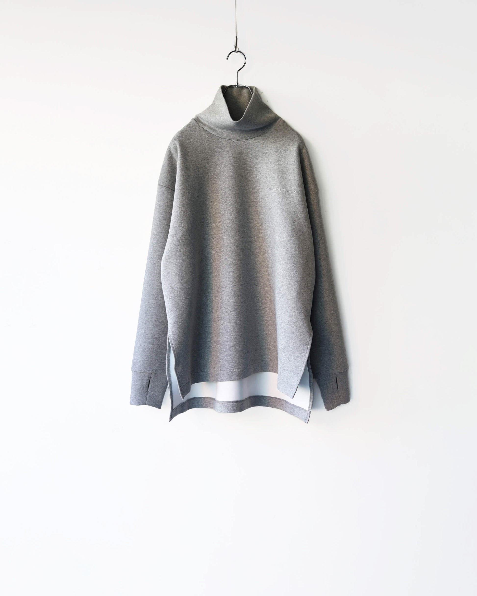 ハイブリッドなダンボールニット素材のハイネックスウェット。