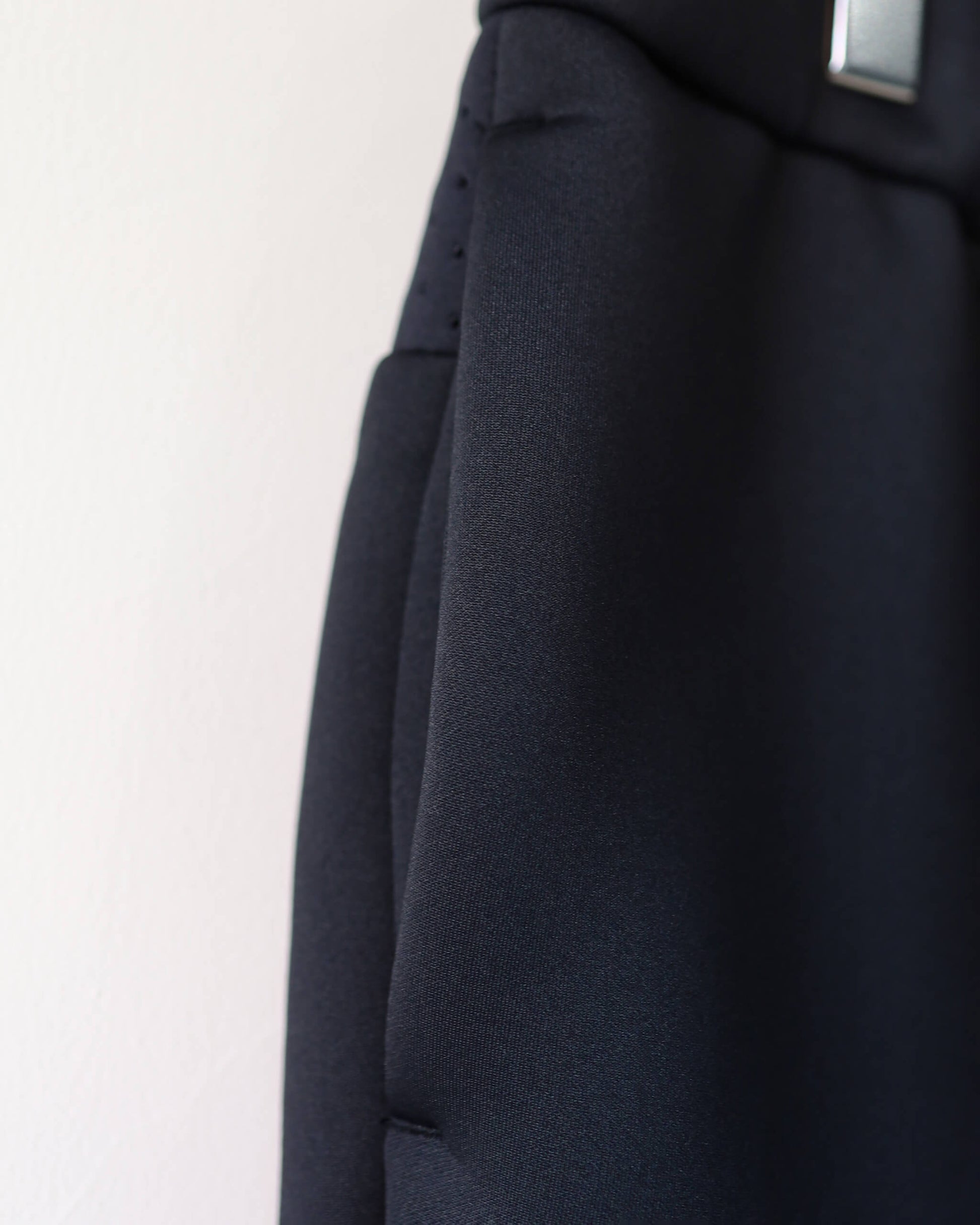 膝下はやや強めにテーパードさせつつも、ストレッチの効いた生地と太もも周りのゆとりを確保し、快適な穿き心地と美しいシルエットを実現した1本です。
