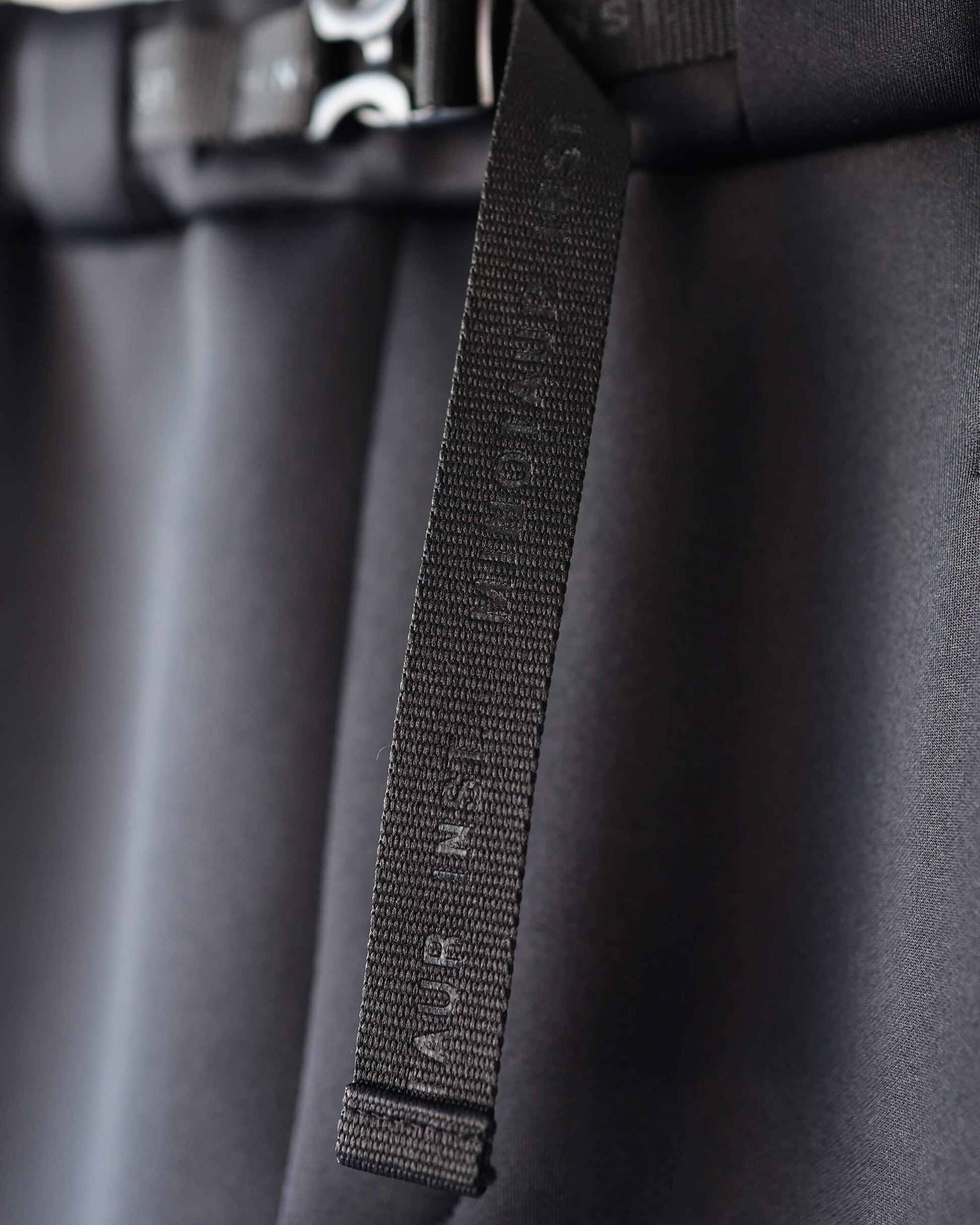 腰に同素材のパンチングを施した生地で切り替えを配し、ベンチレーション機能を持たせています。