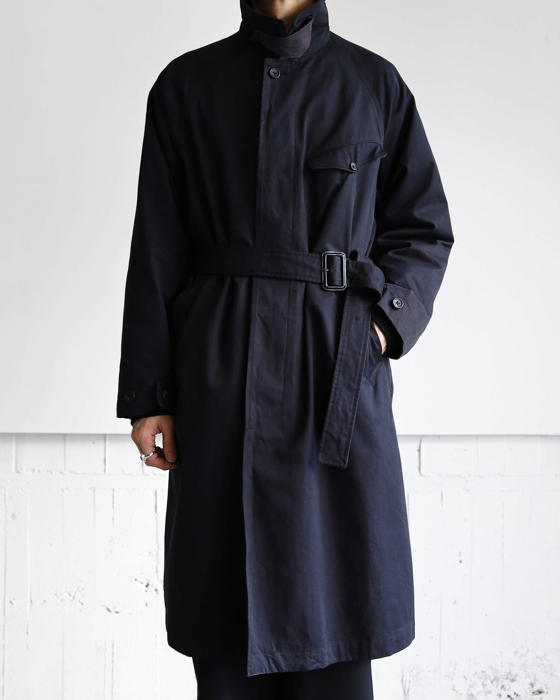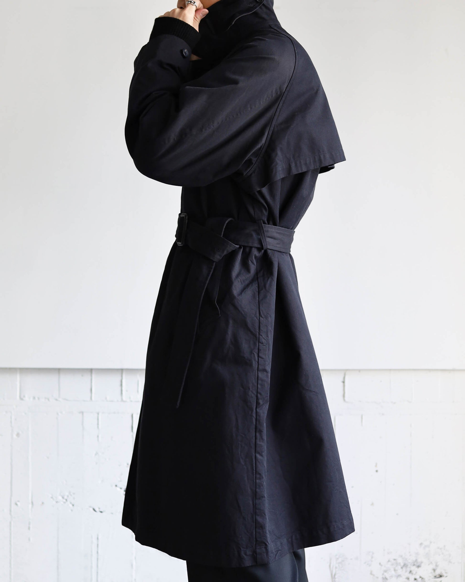 DOUBLE FACE COTTON / BELTED COAT "BLACK"