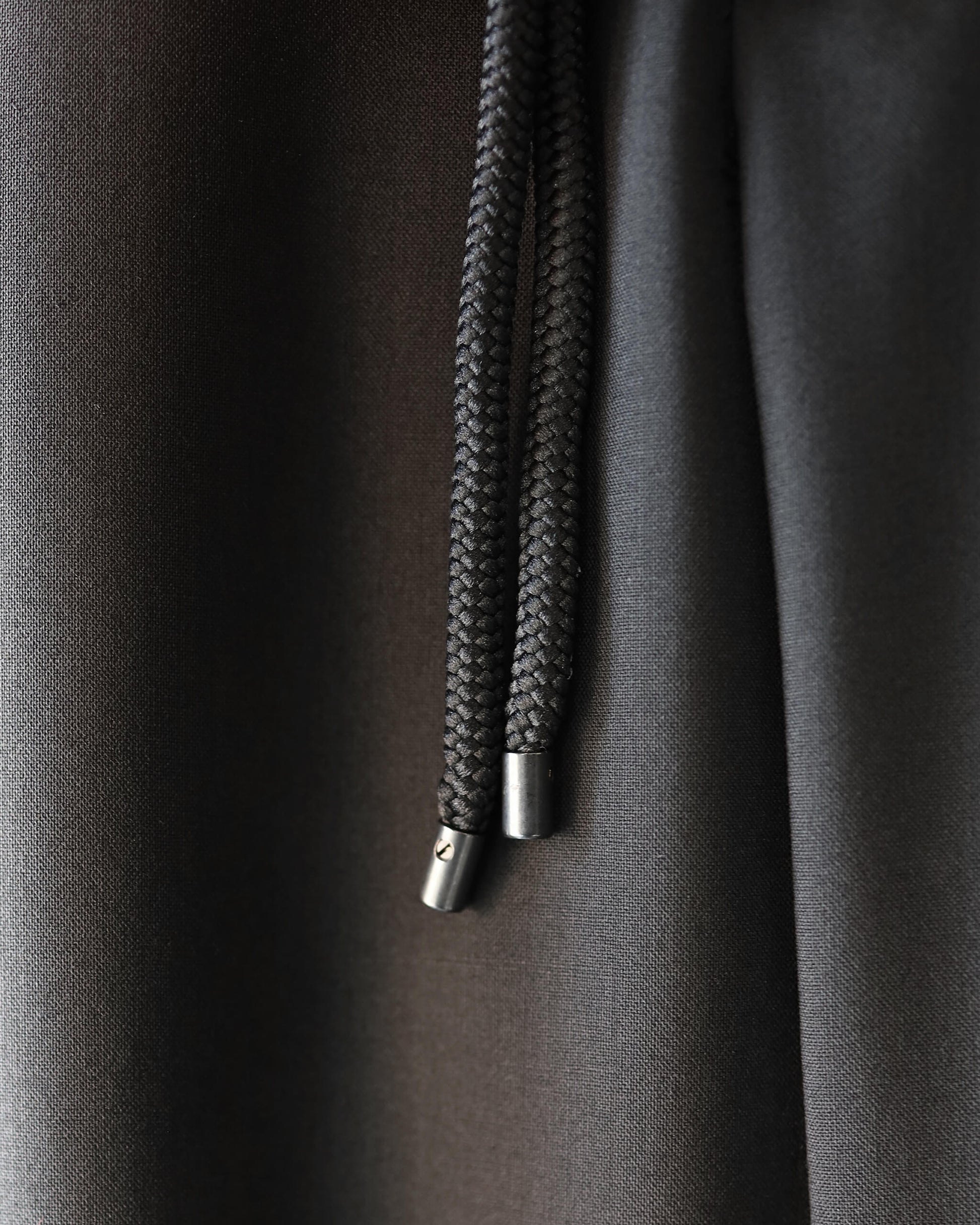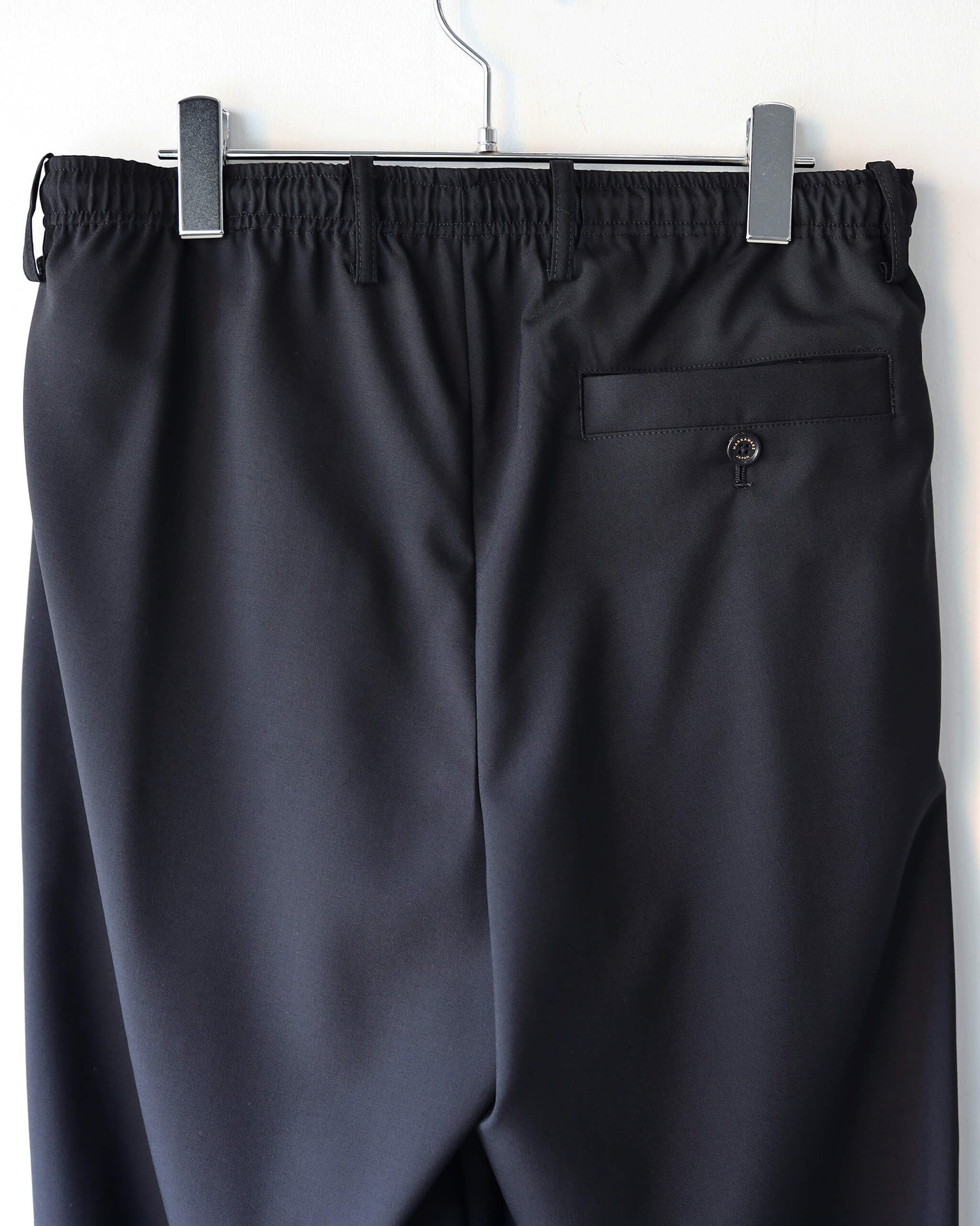 ウエストはゴムとドローコードを配したイージー仕様。素材の存在感を損なうことなく快適な穿き心地を実現しています。