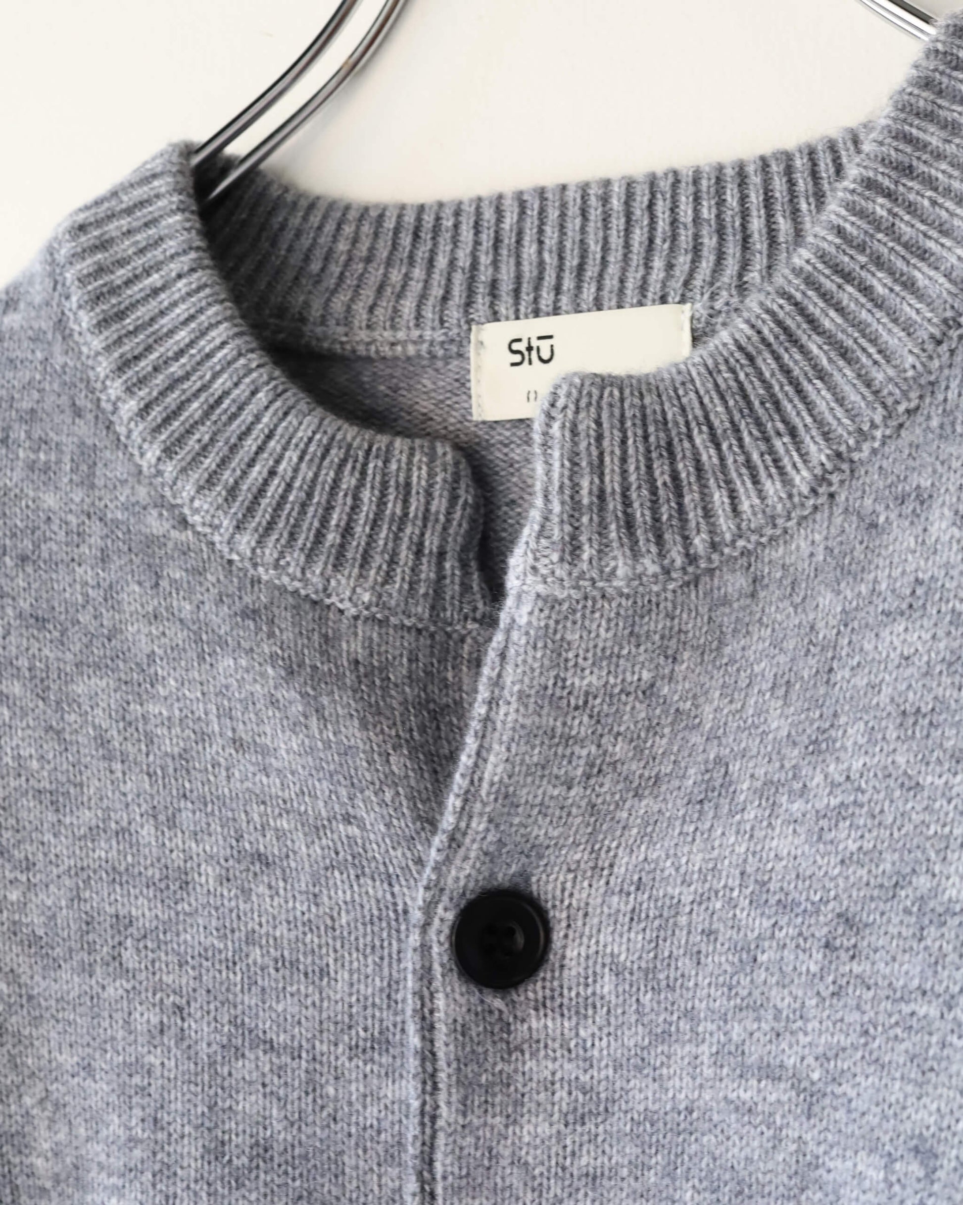 23SS でリリースされたクルーネックニットカーディガンを秋冬素材で別注復刻。