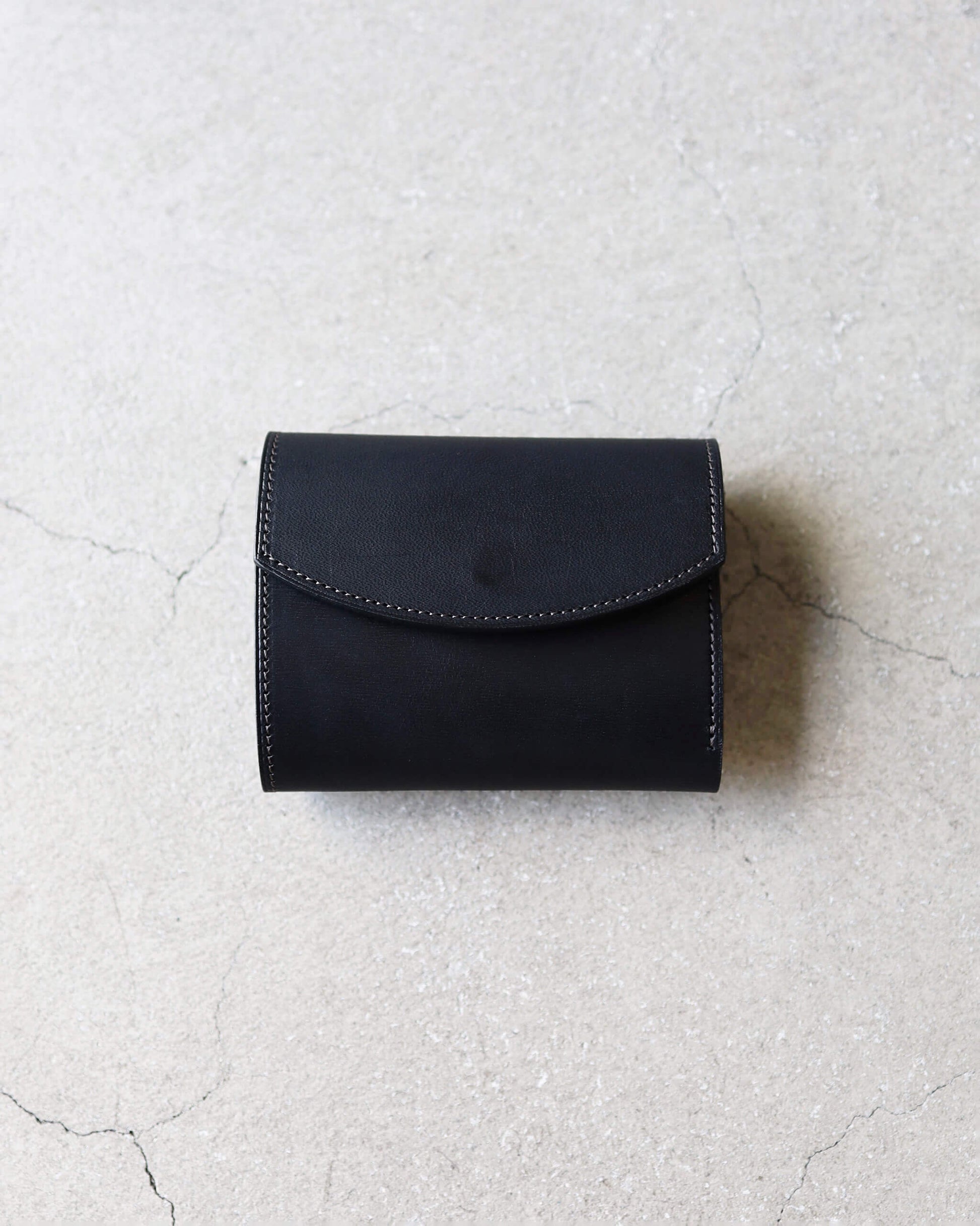 収納力に長けたフラップタイプの三つ折りウォレット。