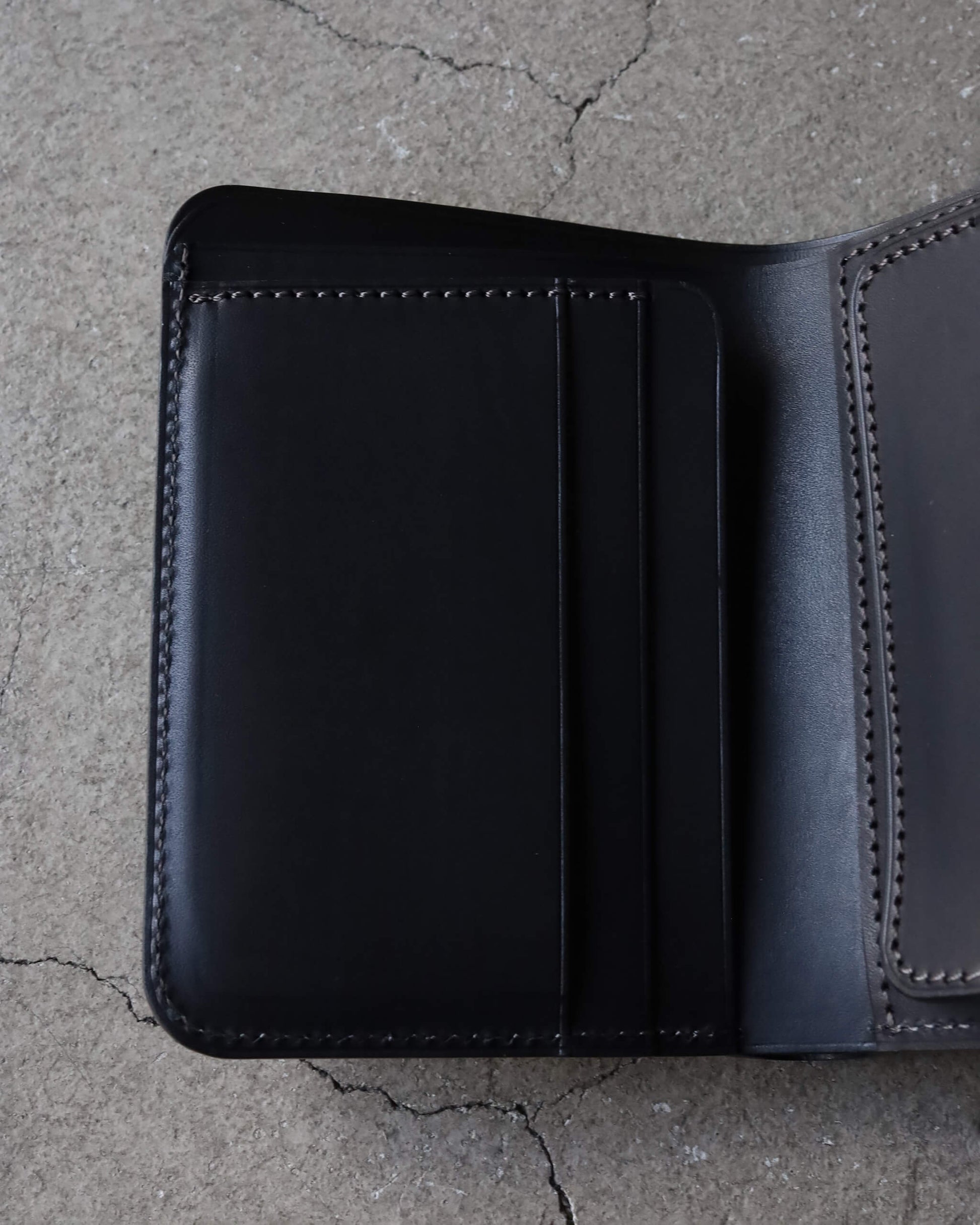 収まりのいいコンパクトなサイズながら、2枚の札入れ・十分なカードの収納力・コインポケットを備えた、機能的な構造です。
