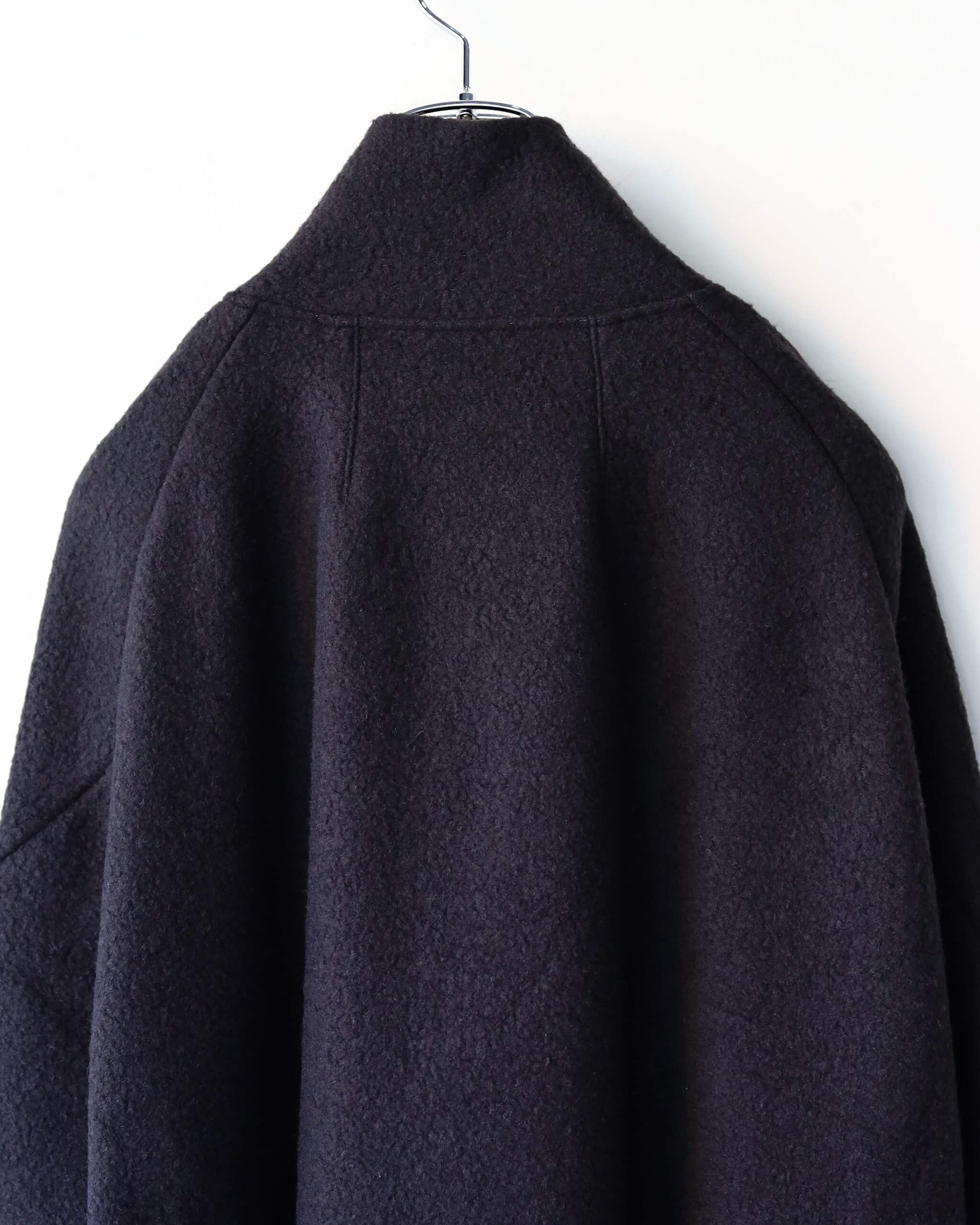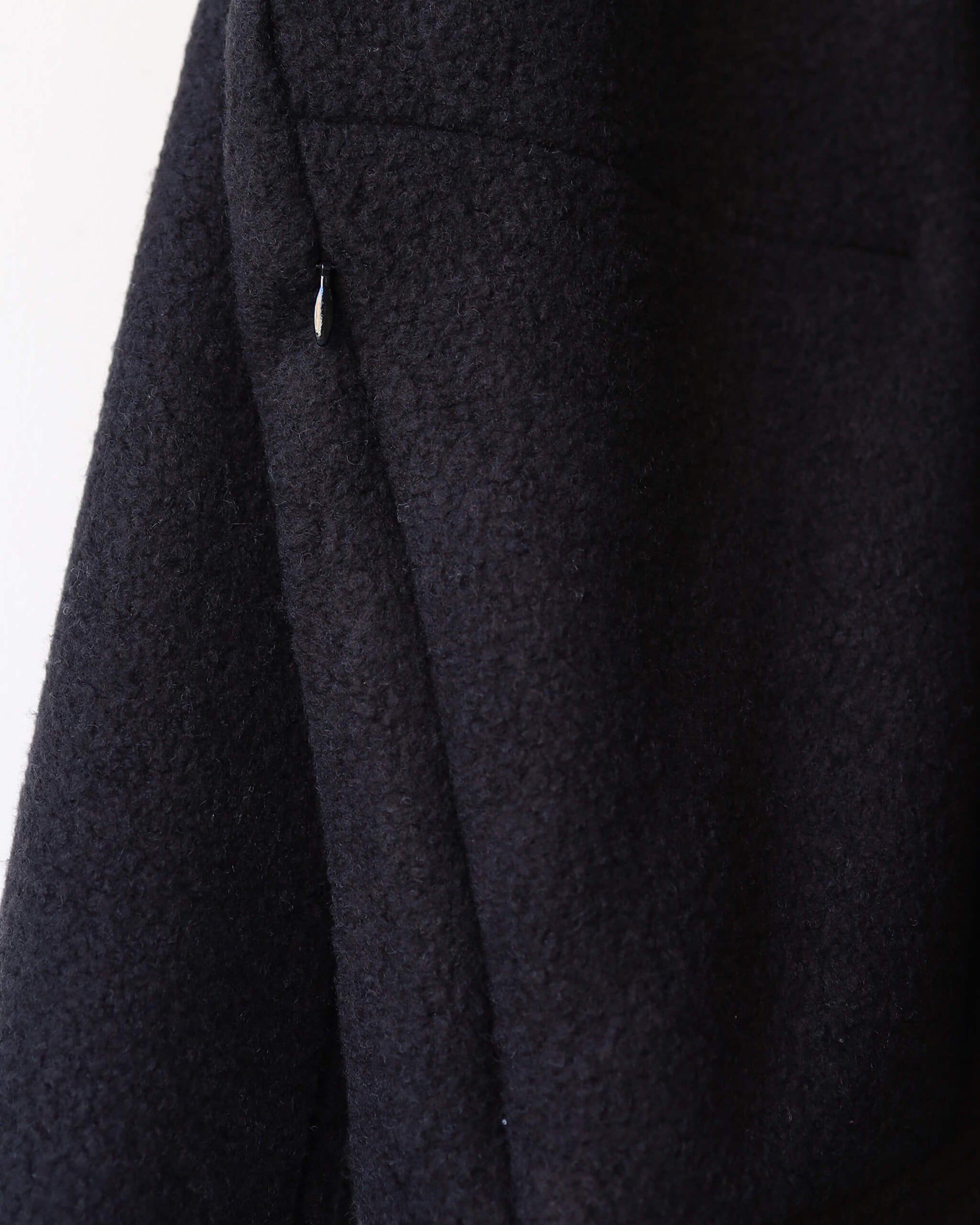 ブランドのアイコン的なディテールである左袖のコンシールジップによる隠しポケットに加え、肘に入ったダーツなどの細部のつくりで魅せる1着です。