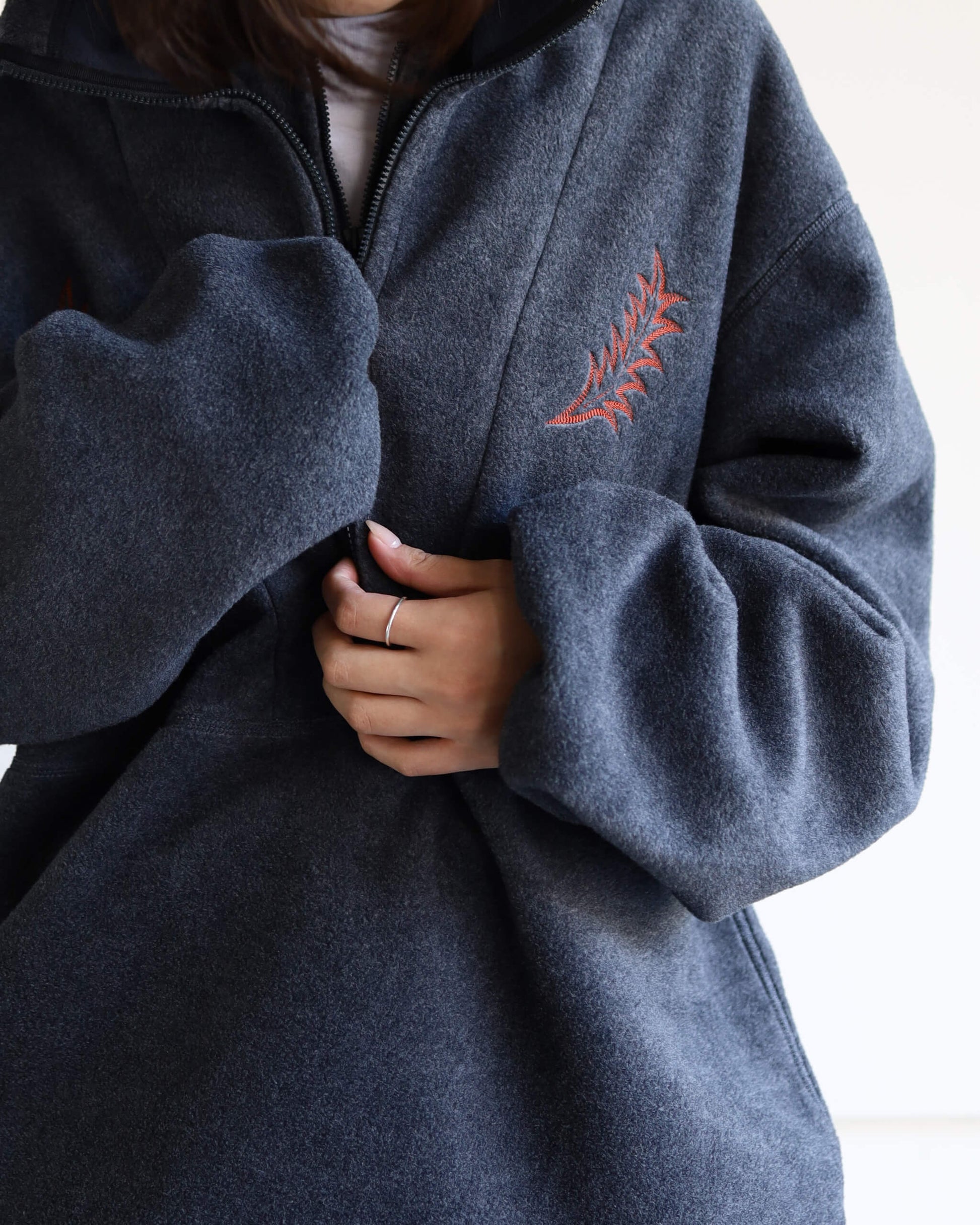 FLEECE W ZIP PULLOVER "CHARCOAL"