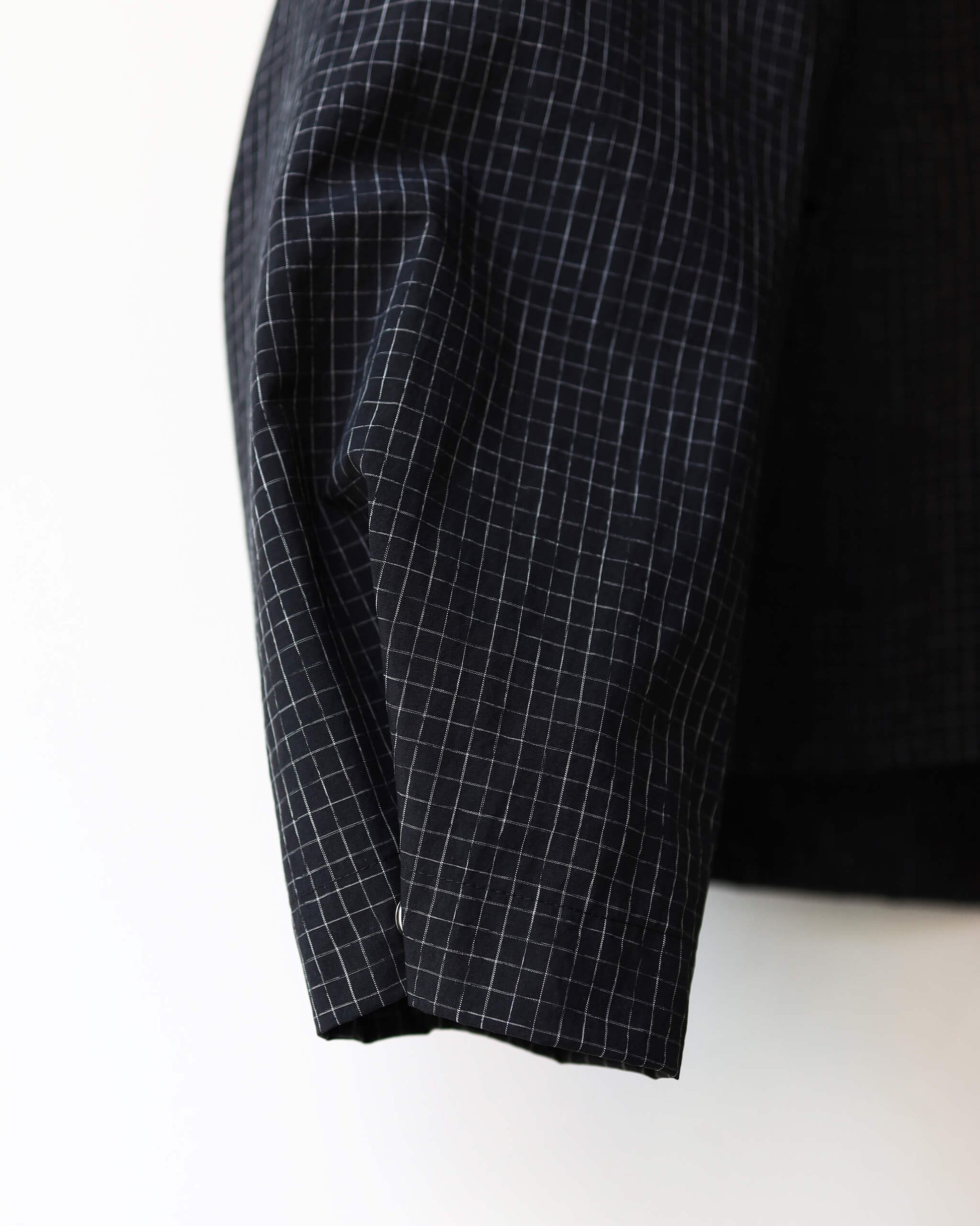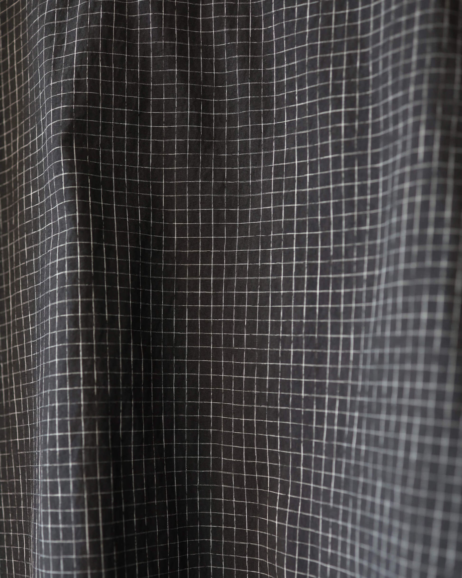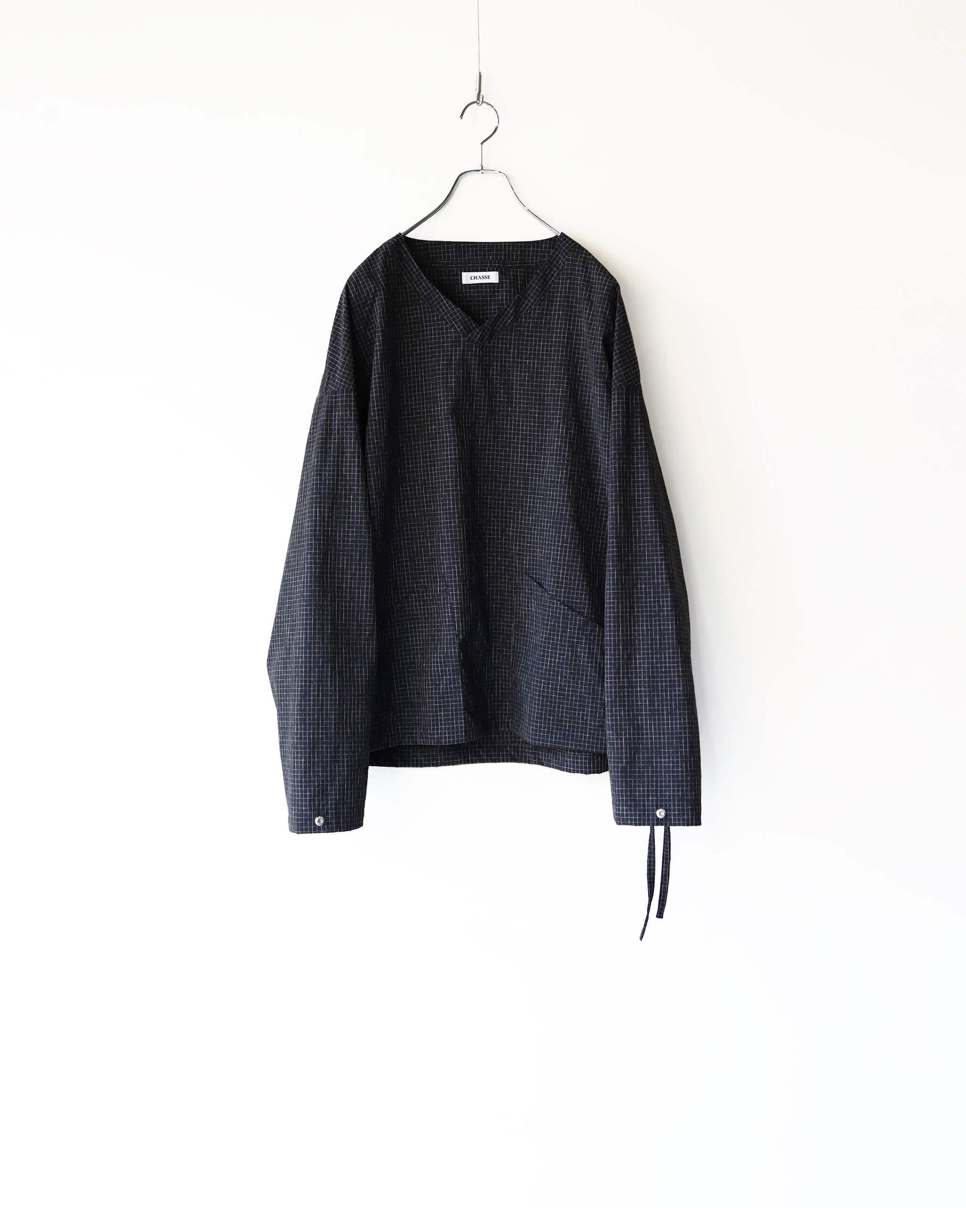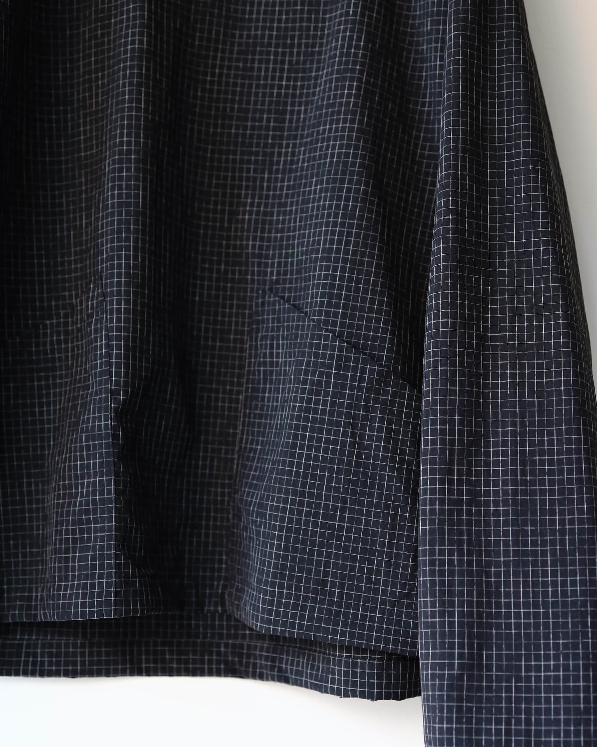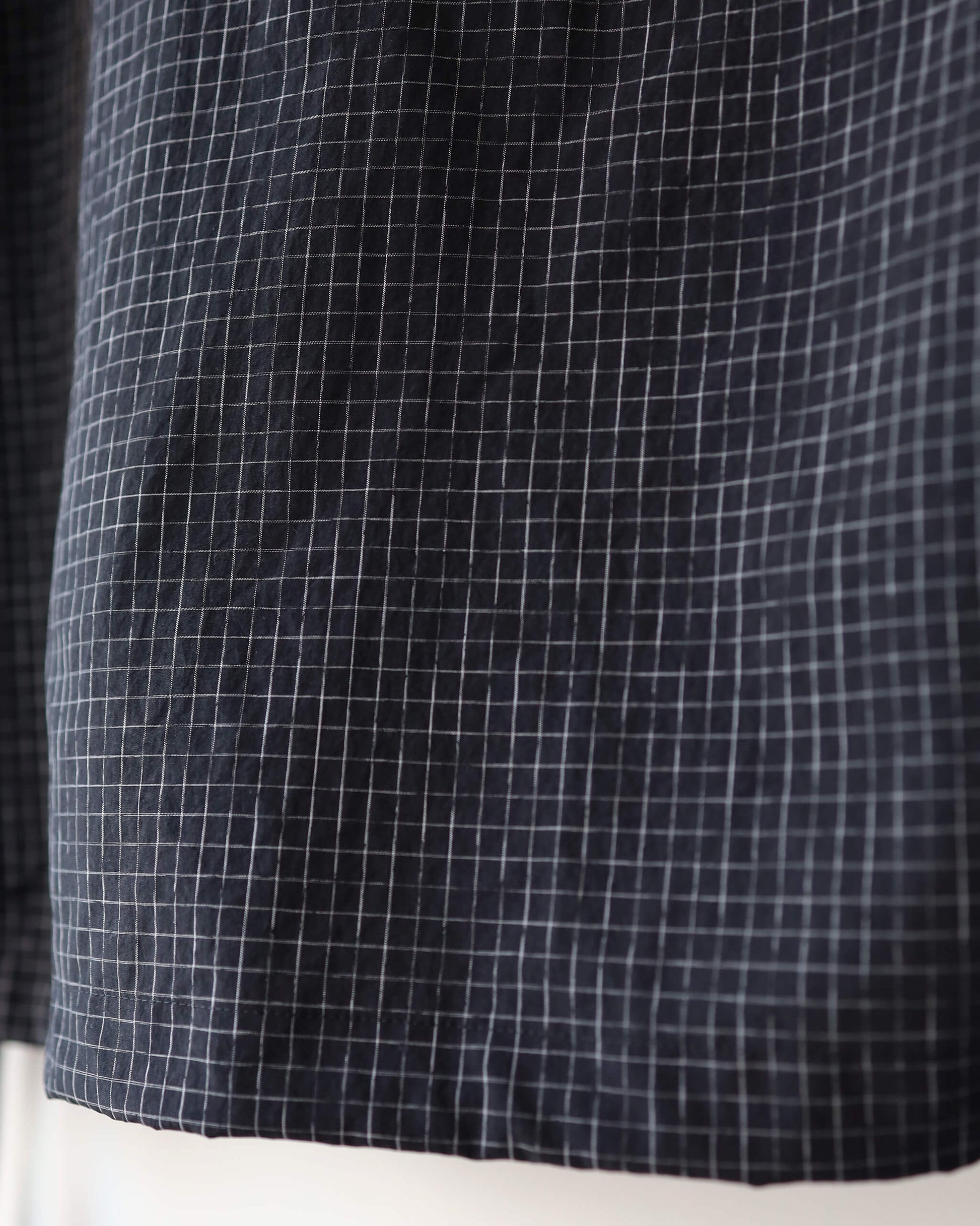 新しい空気感の首の開きと細かなチェック柄が特徴です。