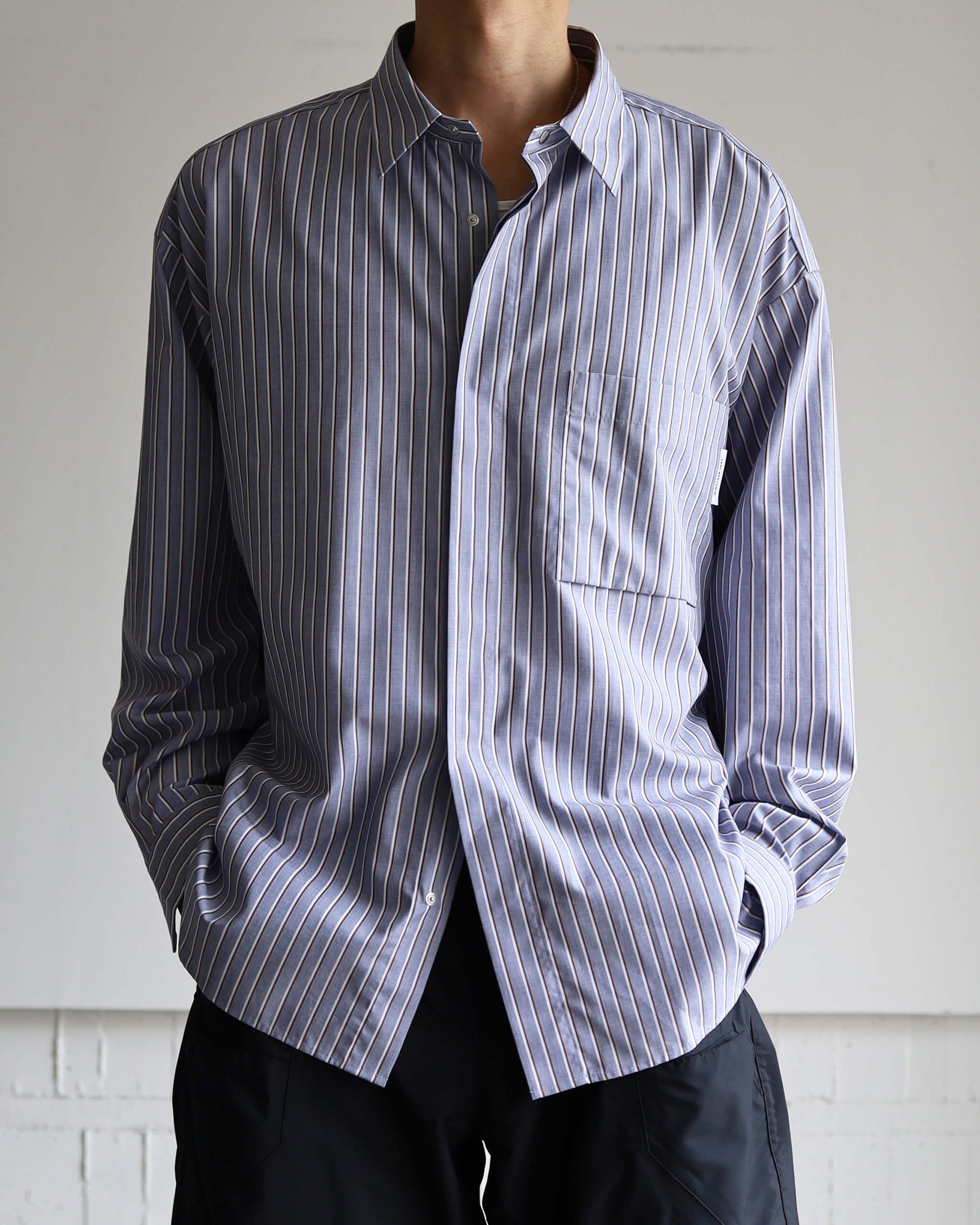ソフトな風合いのタイプライター生地を使用したストライプシャツ。