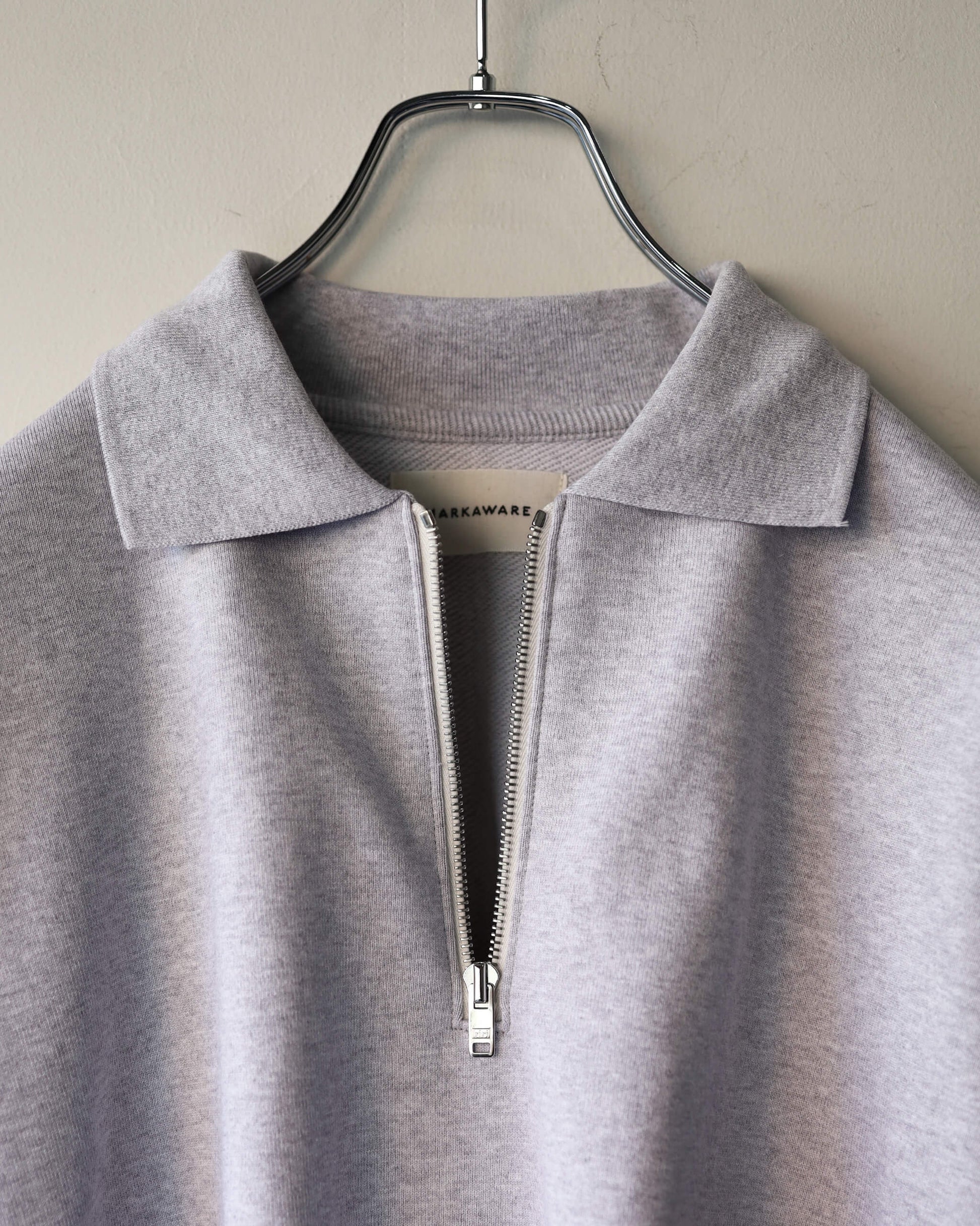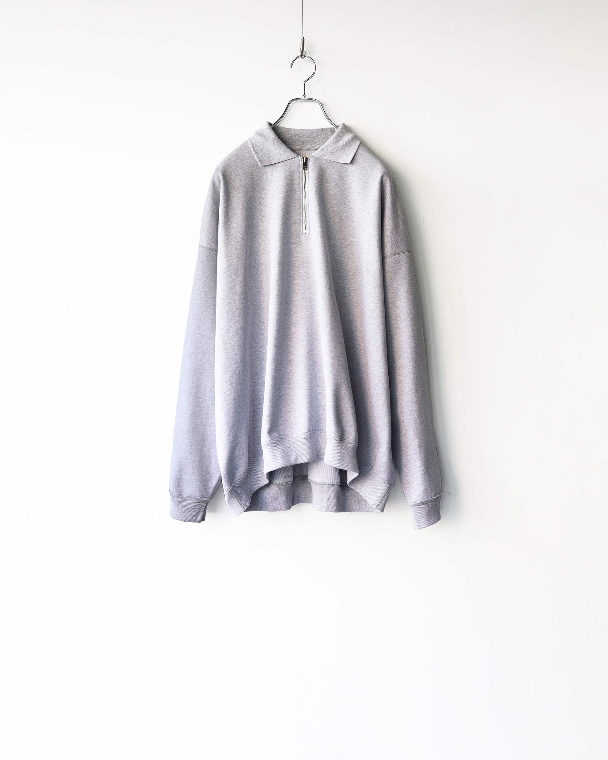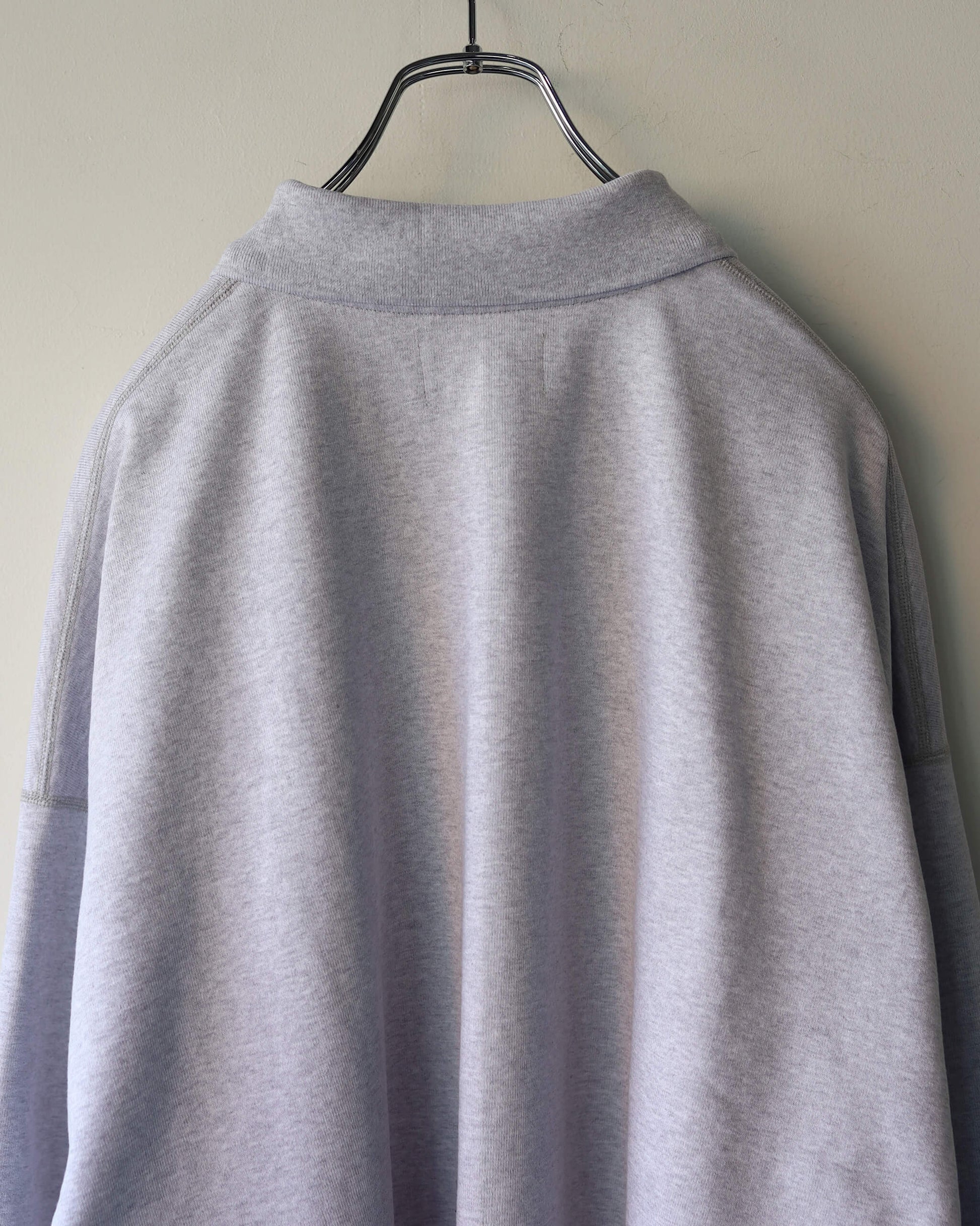 リラックスした丸みのあるシルエットにハーフジップ、ポロ襟の都会的なデザイン。