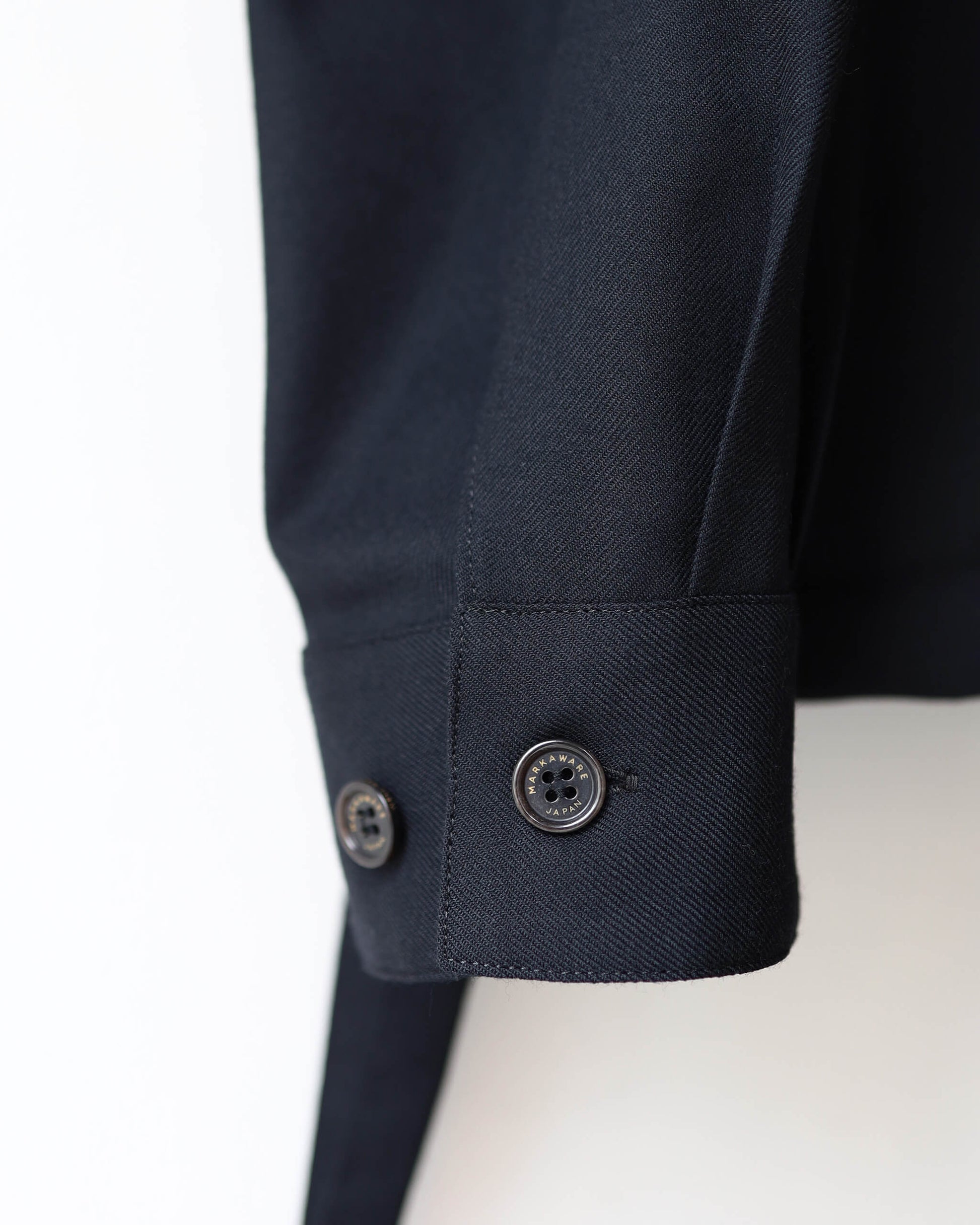 ウールヴィエラの素材を使用したハーフジップのシャツジャケット。