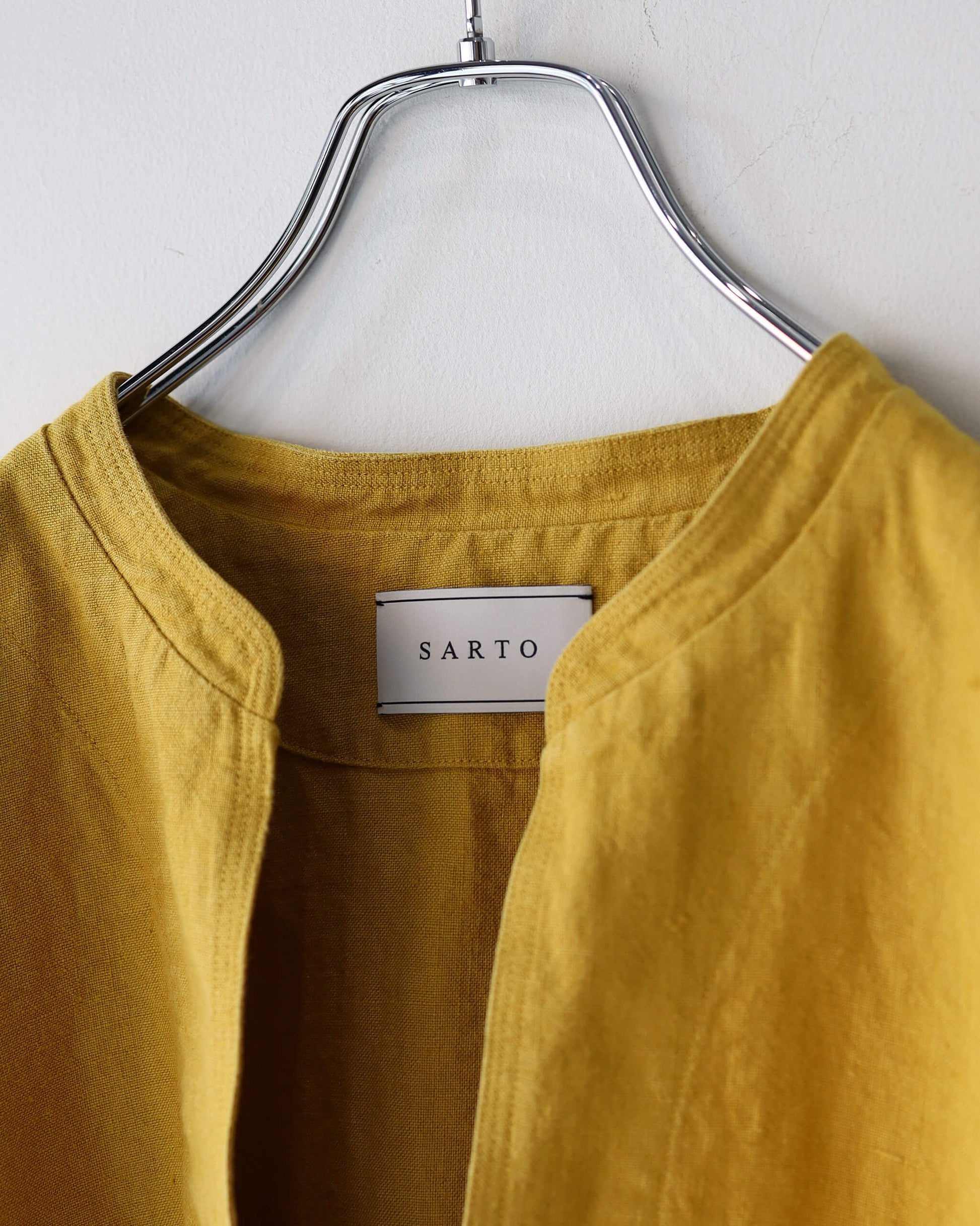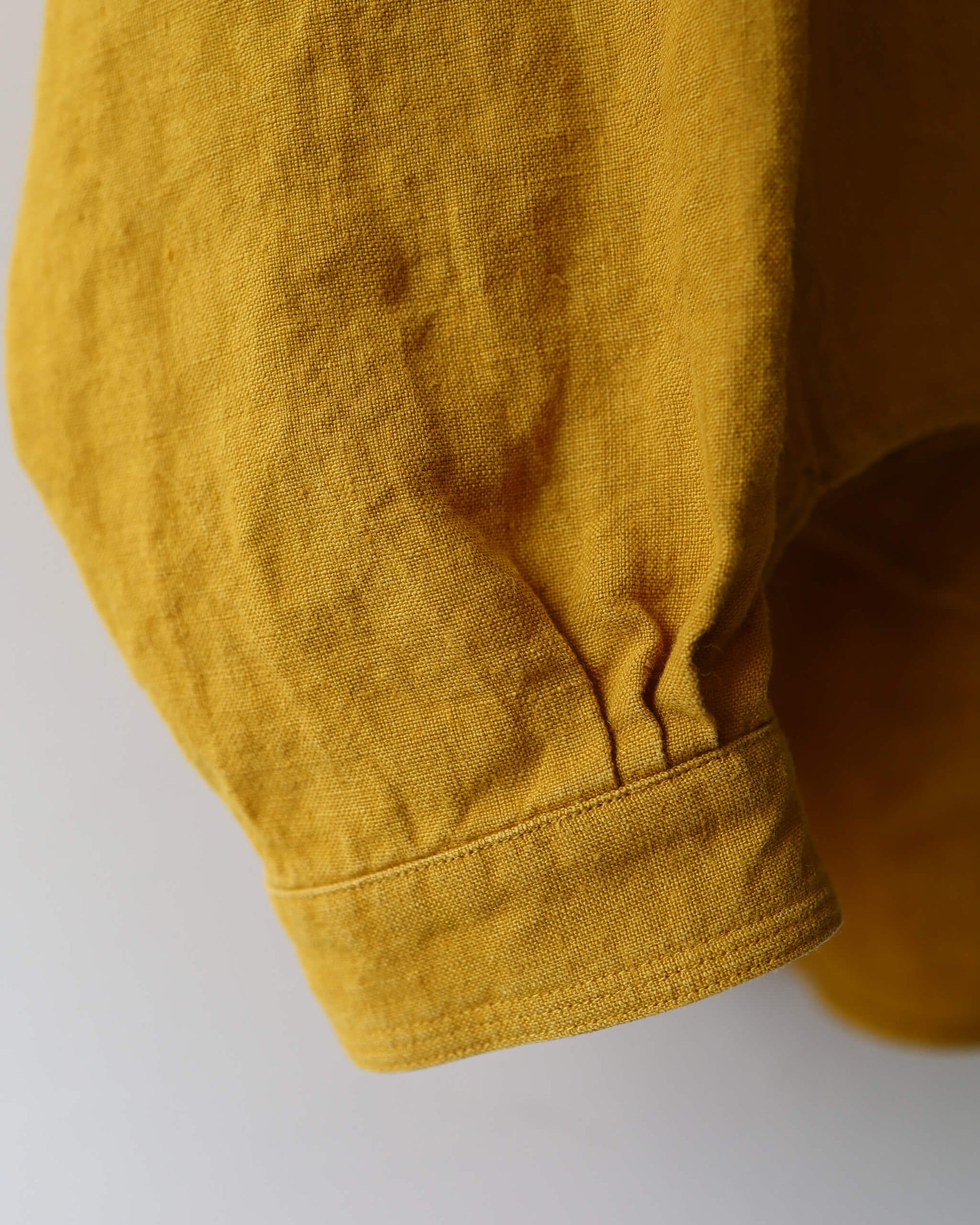 HEAVY LINEN CANVAS STAND COLLAR SKIPPER SHIRT "TURMERIC"