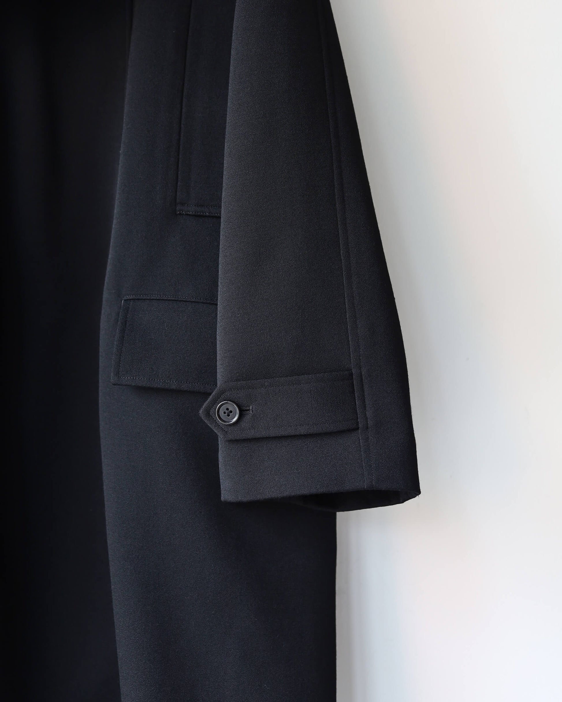 タキシードクロスの素材とゆとりのある身幅から生まれる豊かなドレープを楽しめる1着。