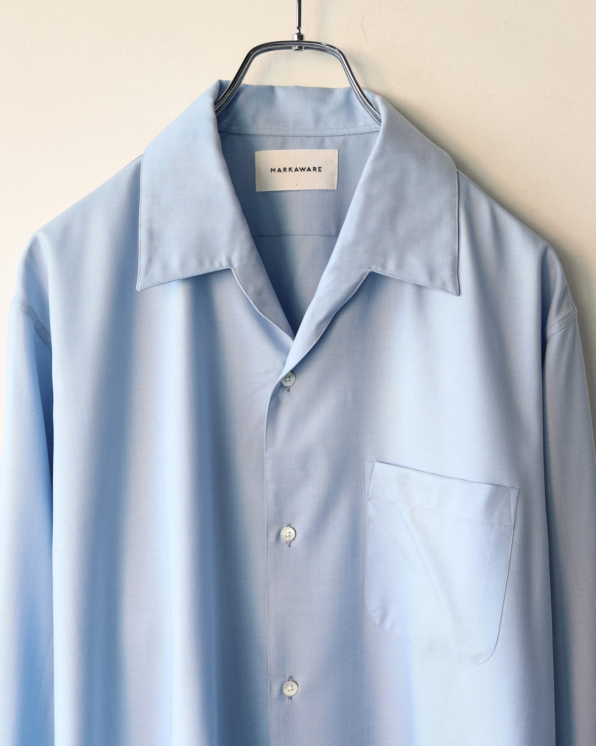 襟と前立て見返しの切り替えをなくしたイタリアンカラーを採用した "ITALIAN OPEN COLLAR SHIRT"。