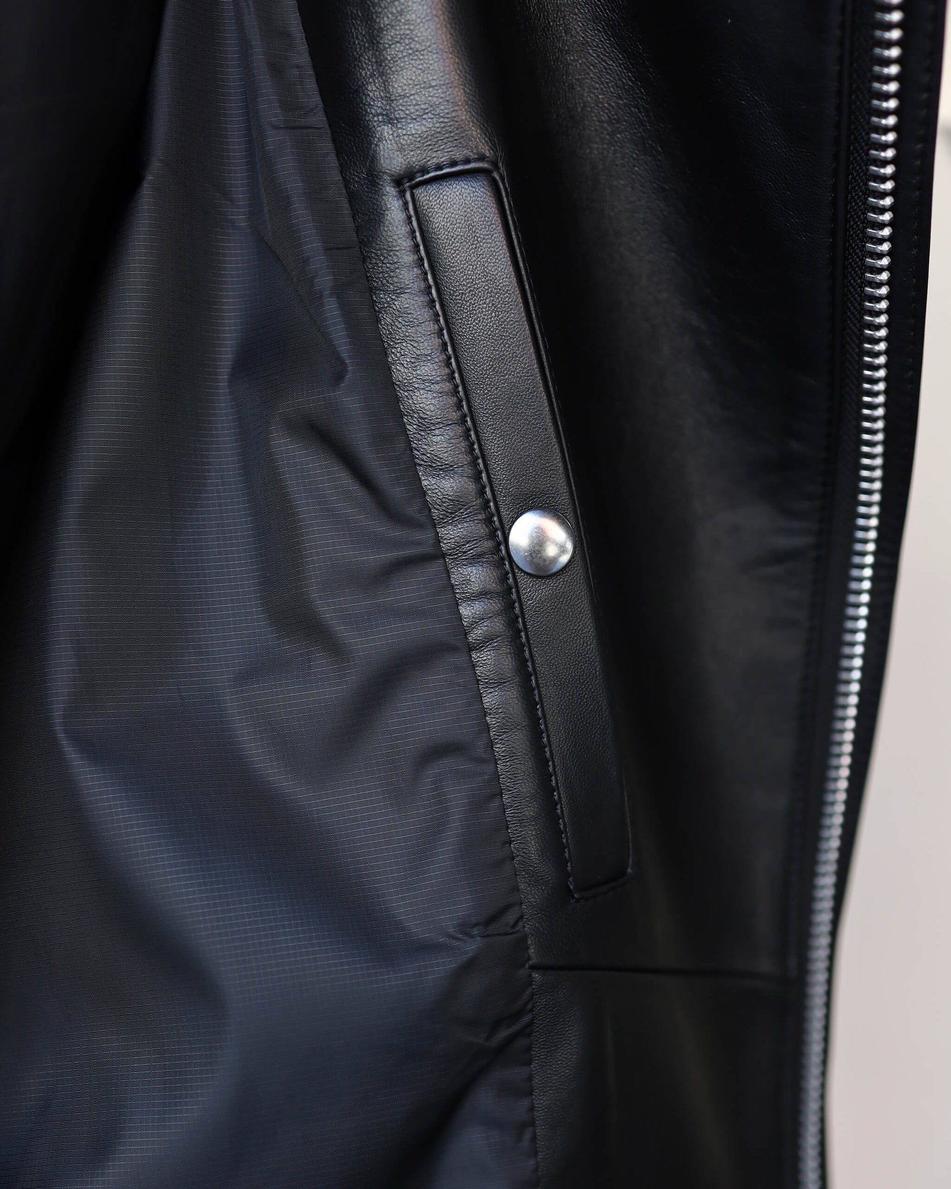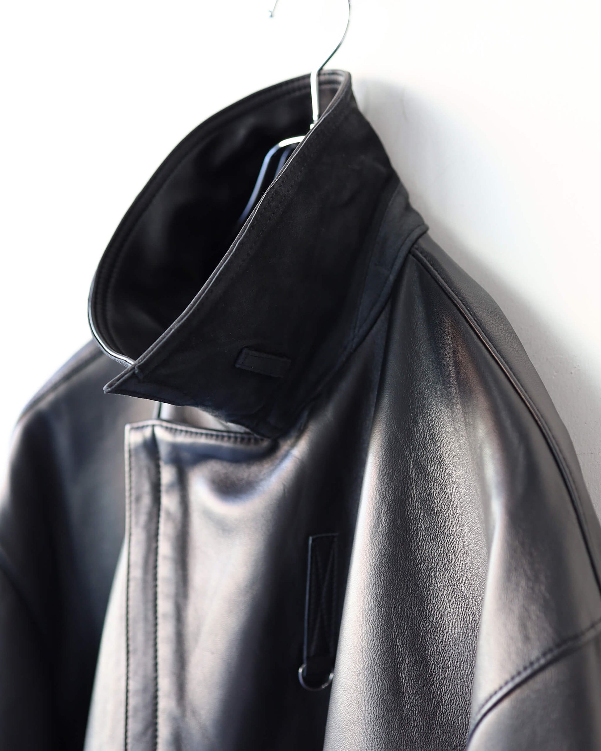 ミリタリーの重厚感を感じる見た目とは裏腹に、滑らかで軽やかなシープレザーを用いることで、品のある表情に仕上がっています。