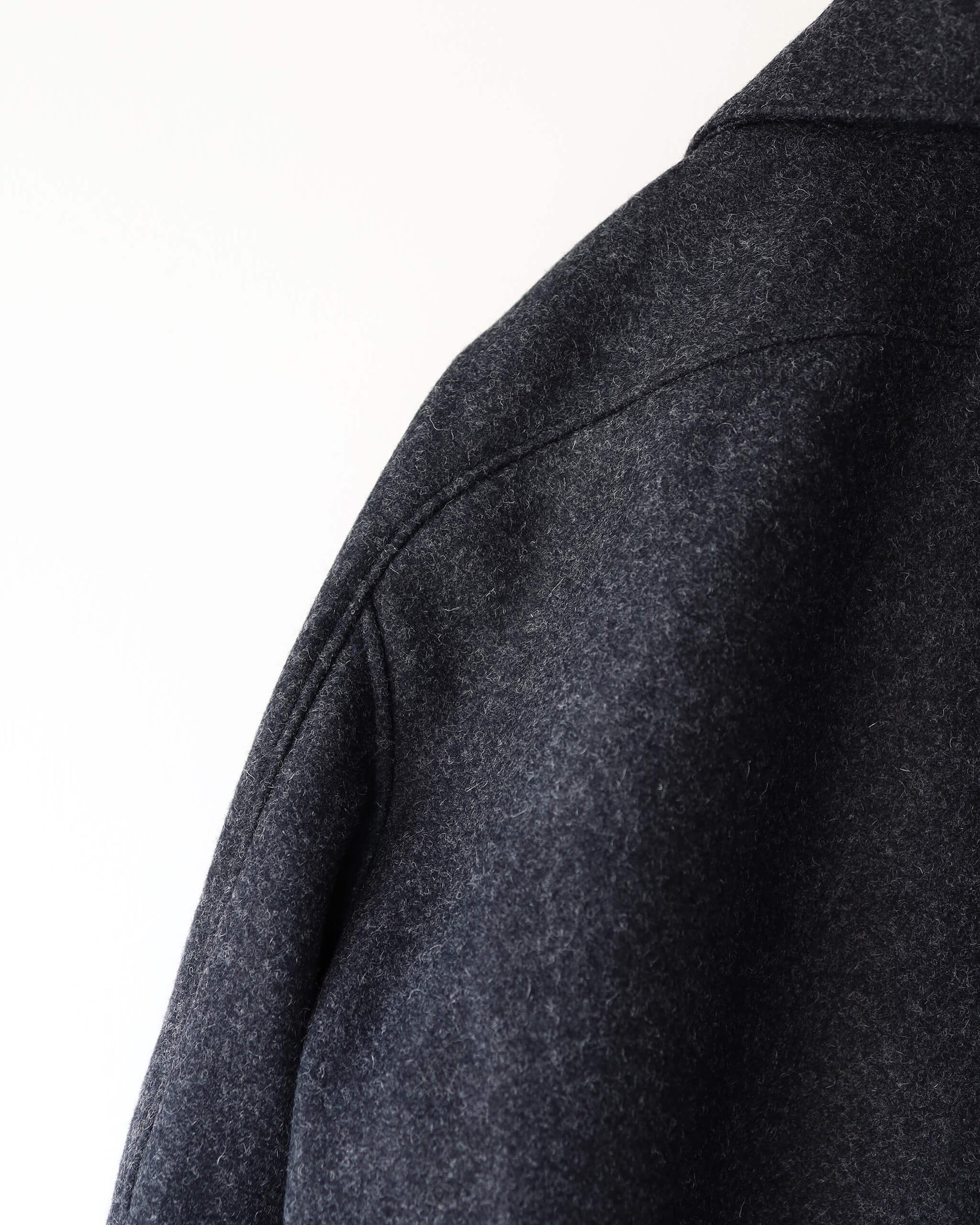コンパクトな着丈、共地で製作したリブによりミニマルな印象に。