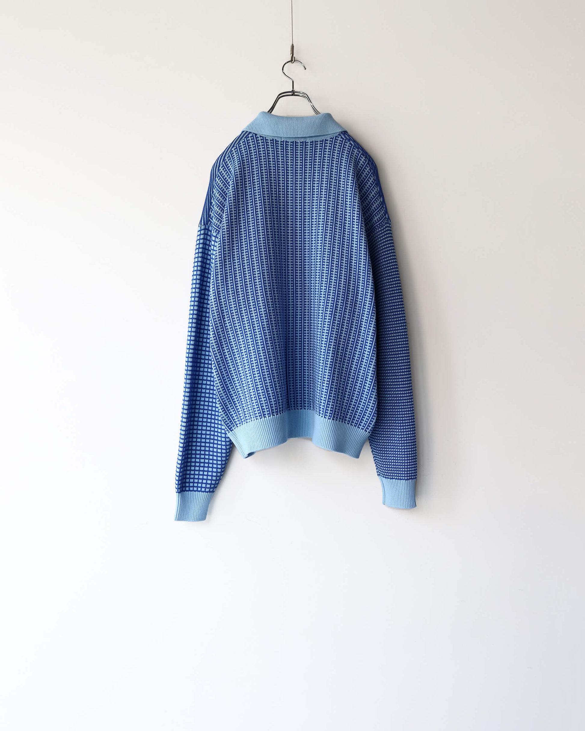 同糸で網目の違うニット地をパネルごとで切り替えたニットシャツ。