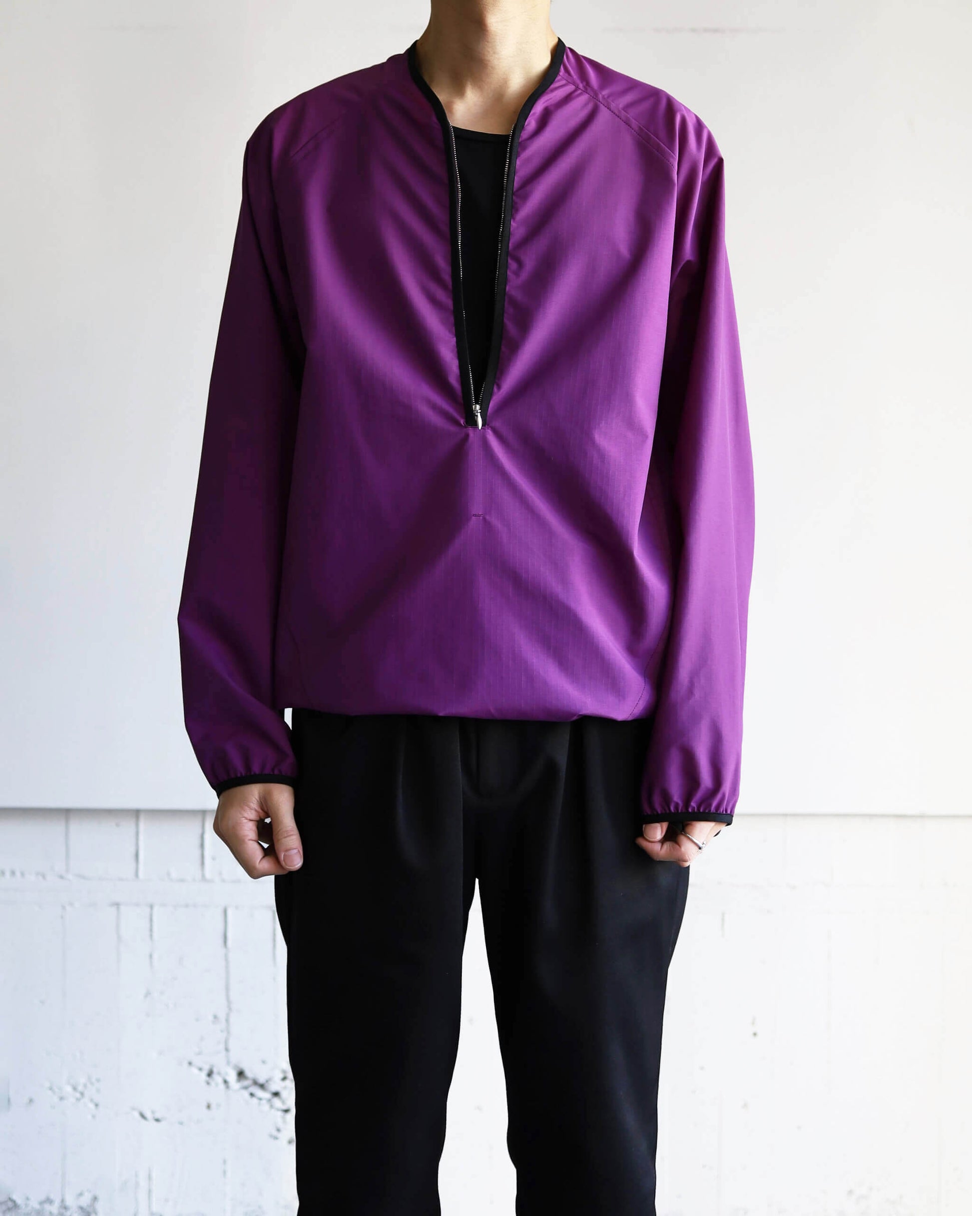 リップストップナイロンを使用したハーフジップシャツ。