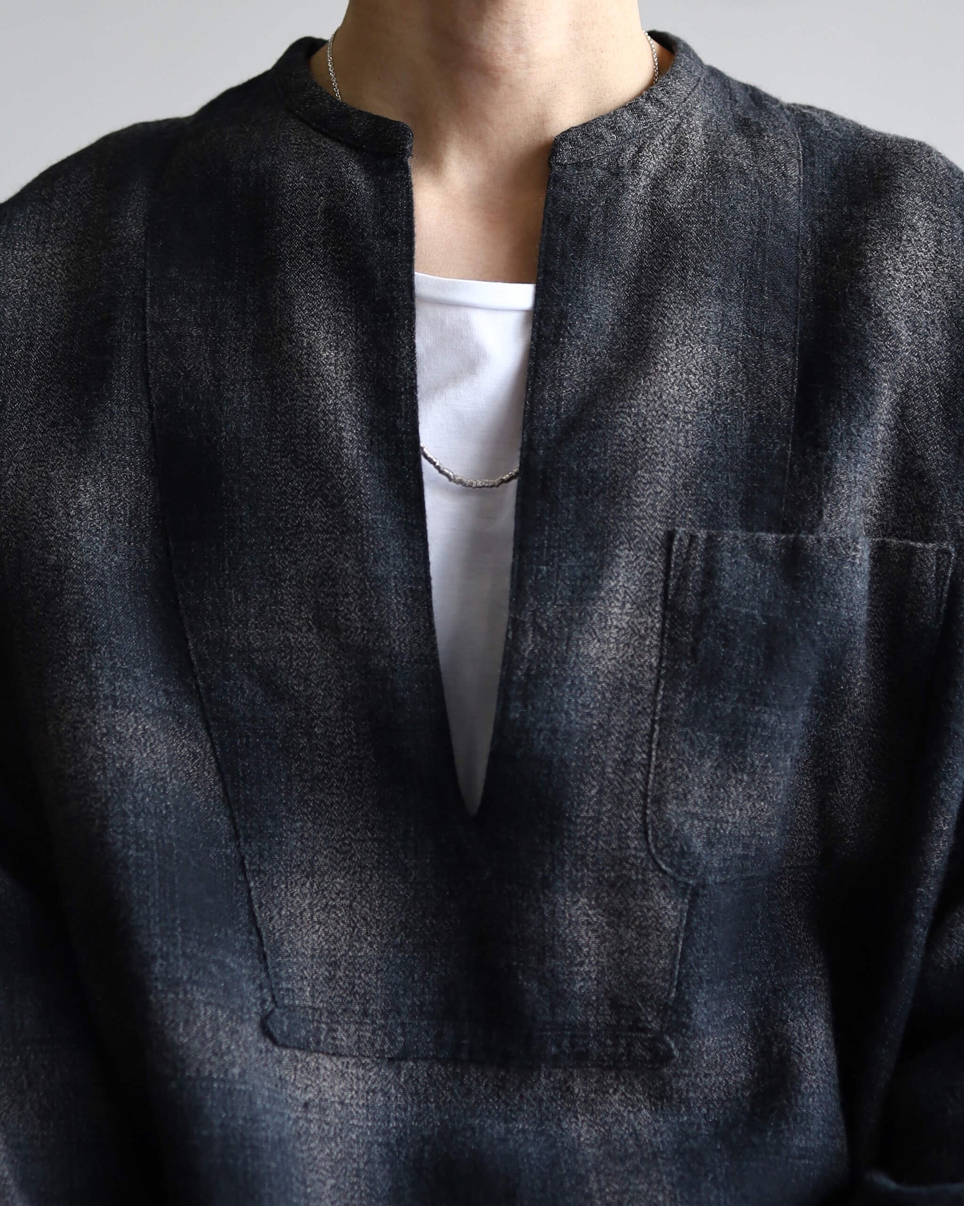 リネン×ウールの独特な柄の表情と肌触りを持った、奥行きのある素材です。