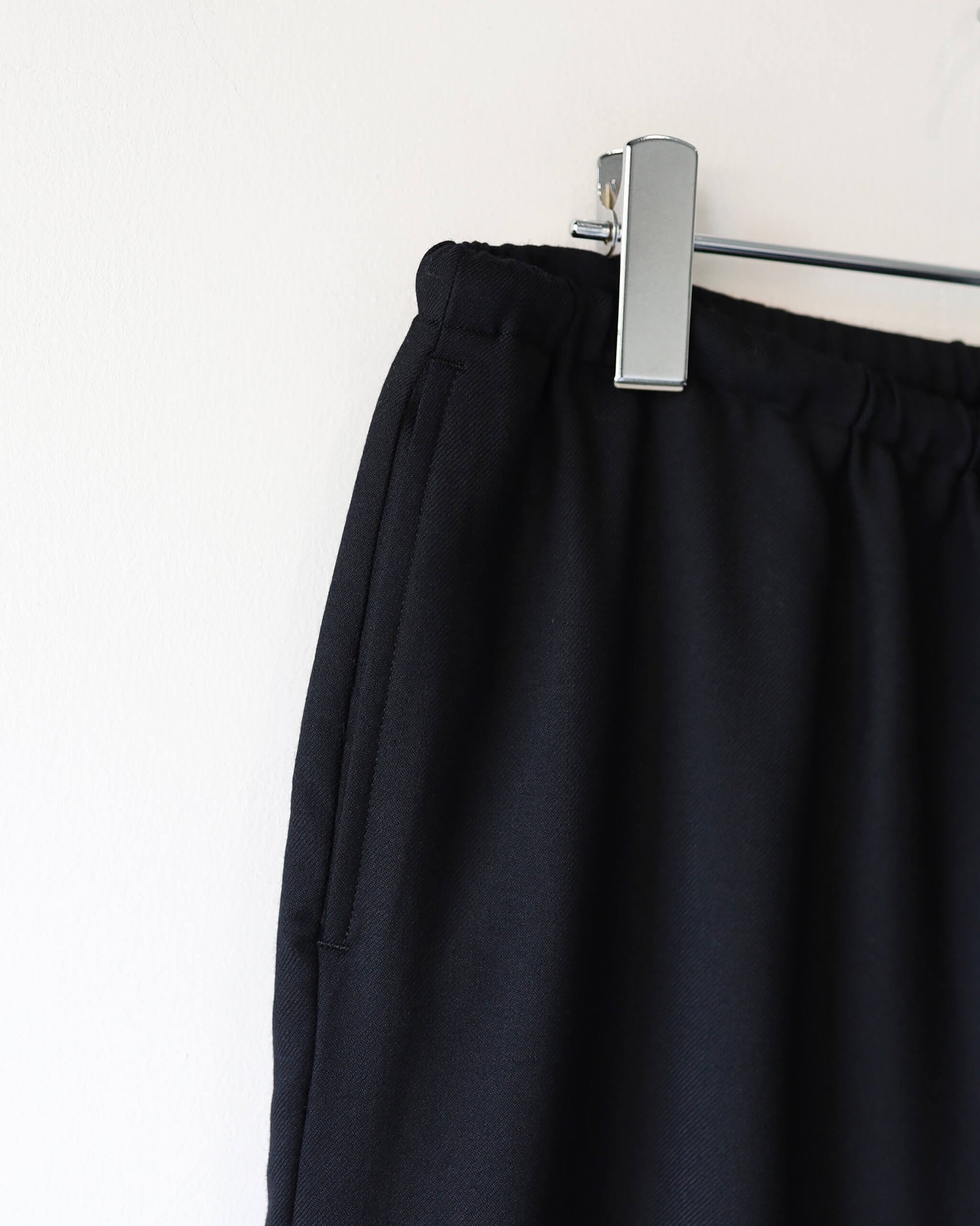 ウエストはドローコードを備えたイージー仕様。センタークリースを施し、上品さとリラックス感を両立しています。