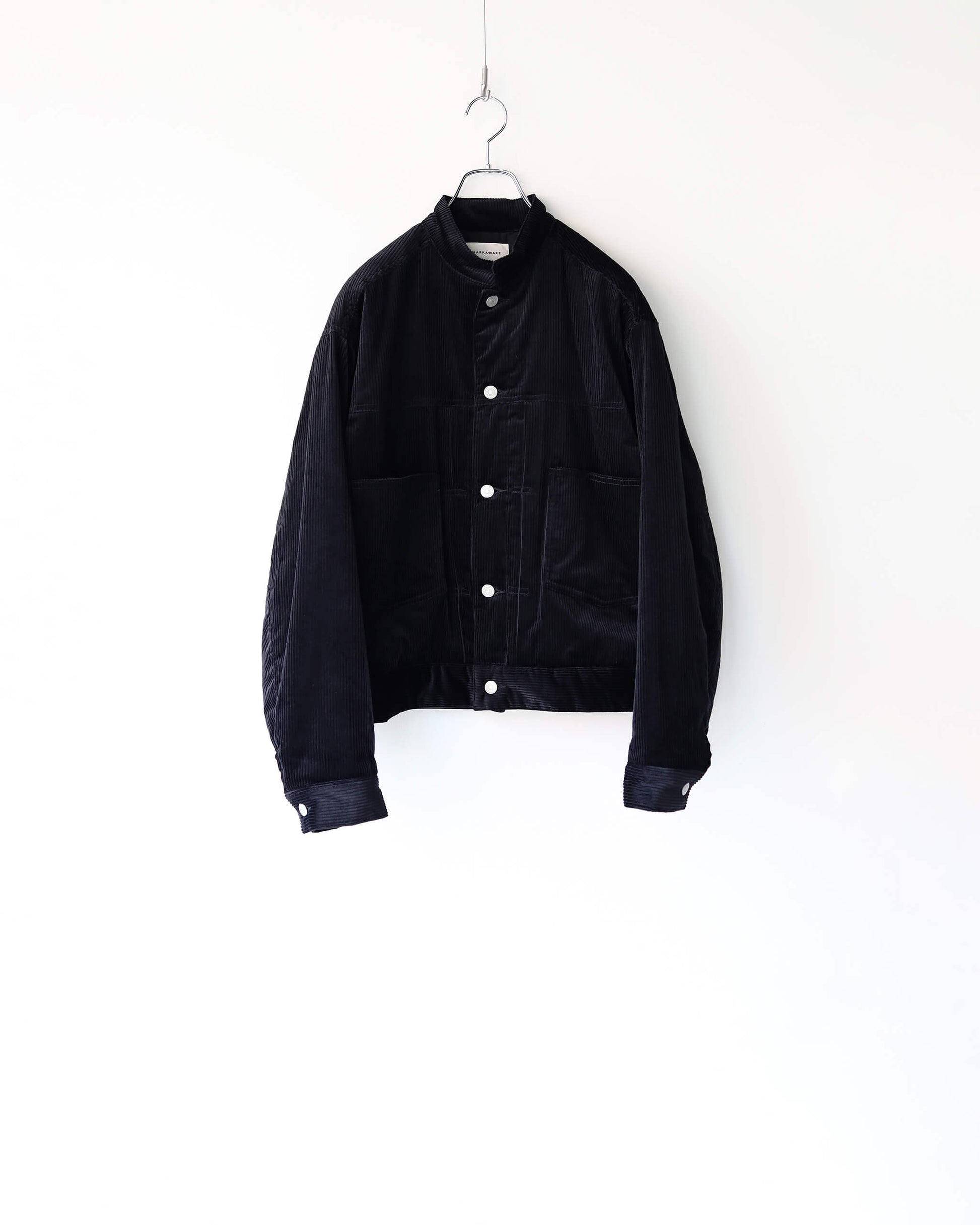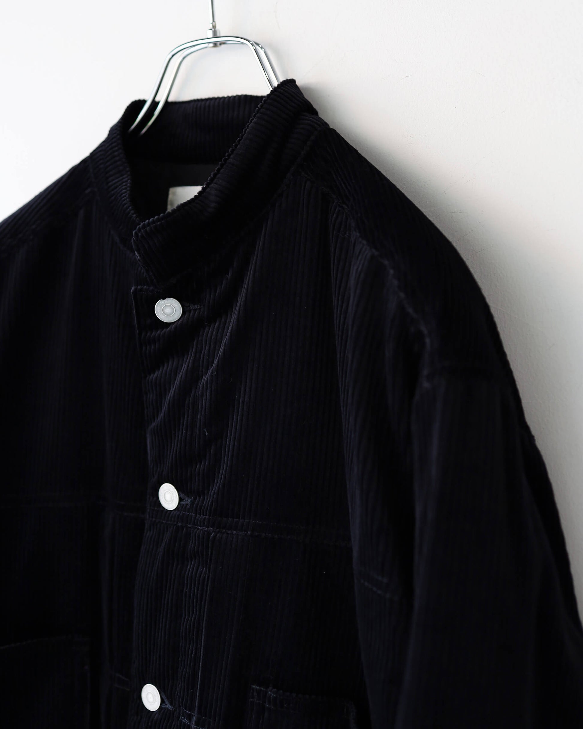 PUFFED MANDARIN COLLAR WORK JACKET ORGANIC COTTON 6-WALE CORDUROY "BLACK"