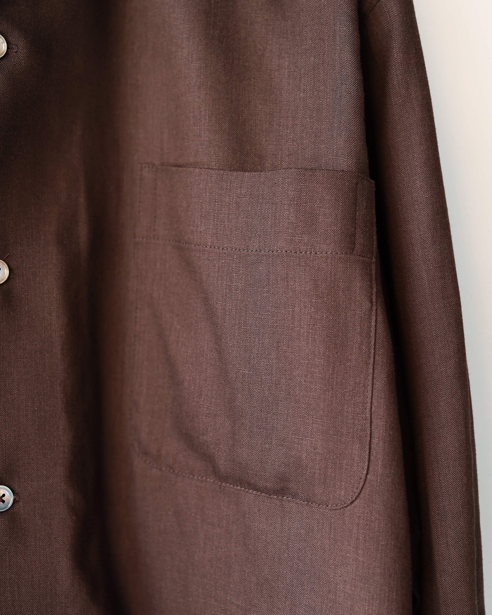 仕上げにタンブラーをかけることでレーヨンの風合いの良さが強調されており、メンズライクな目面とは裏腹にフェミニンな印象を感じる上品な光沢ととろみも特徴です。