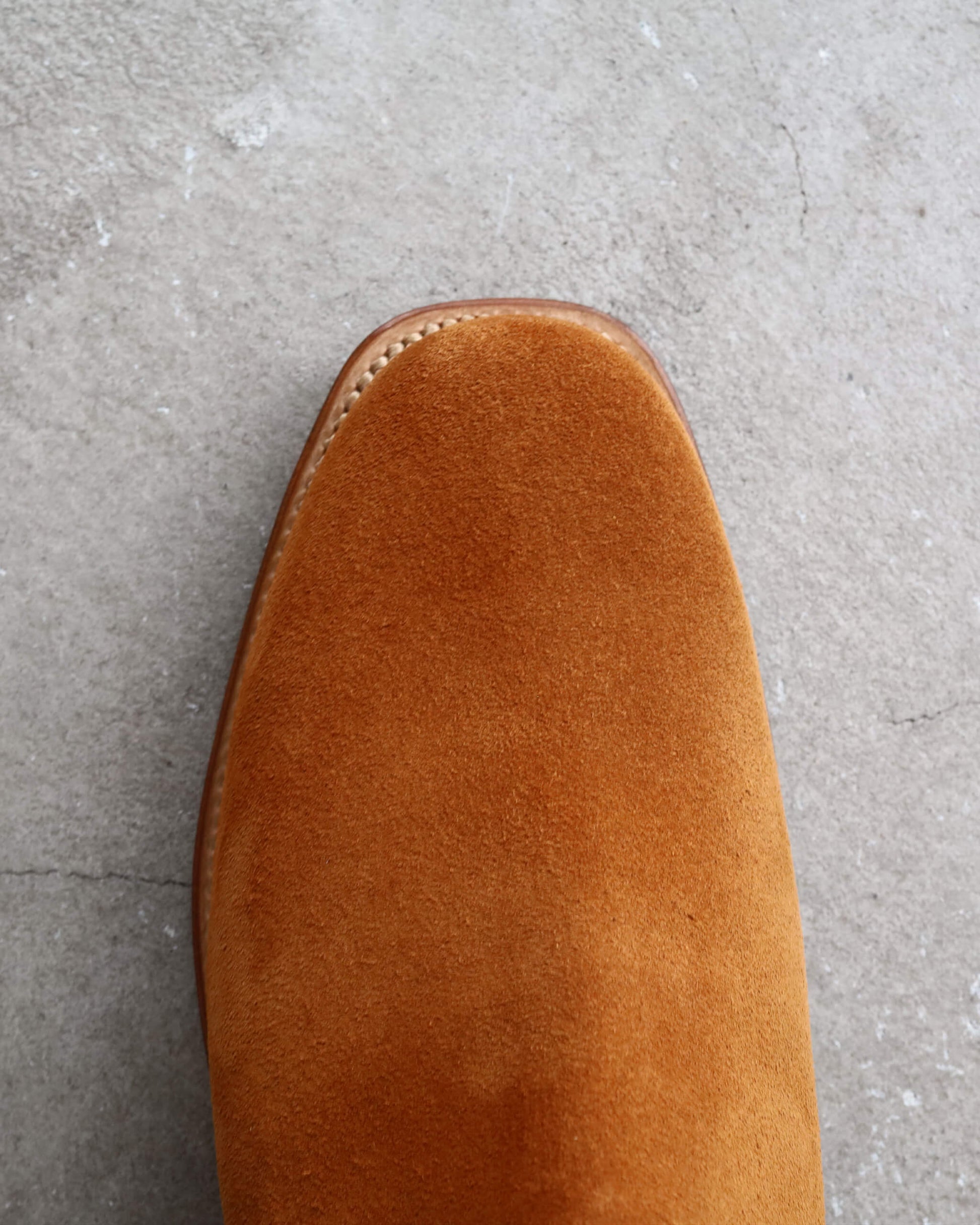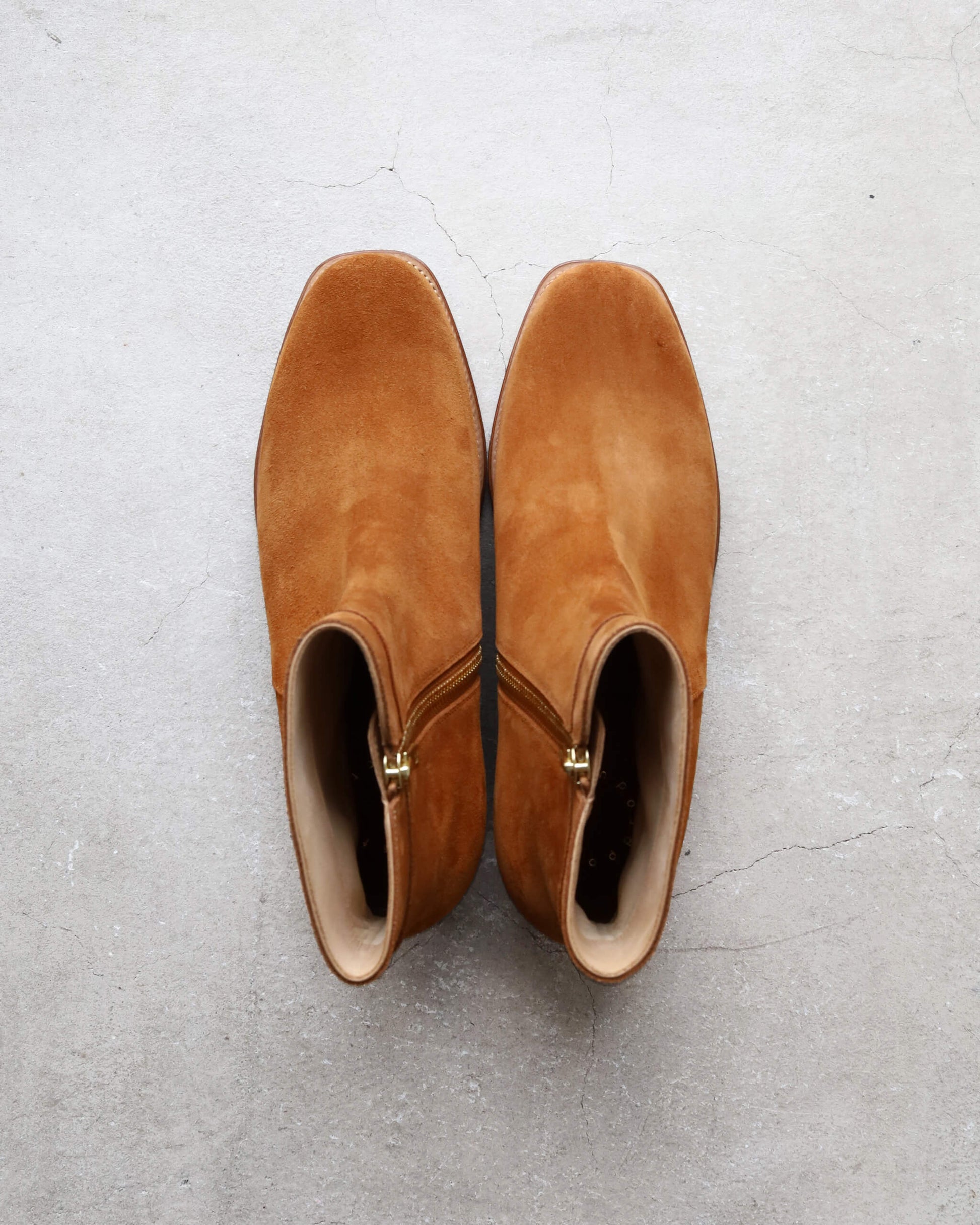 イギリスのカーフスウェードを使用したエレガントな顔立ちのサイドジップブーツ。