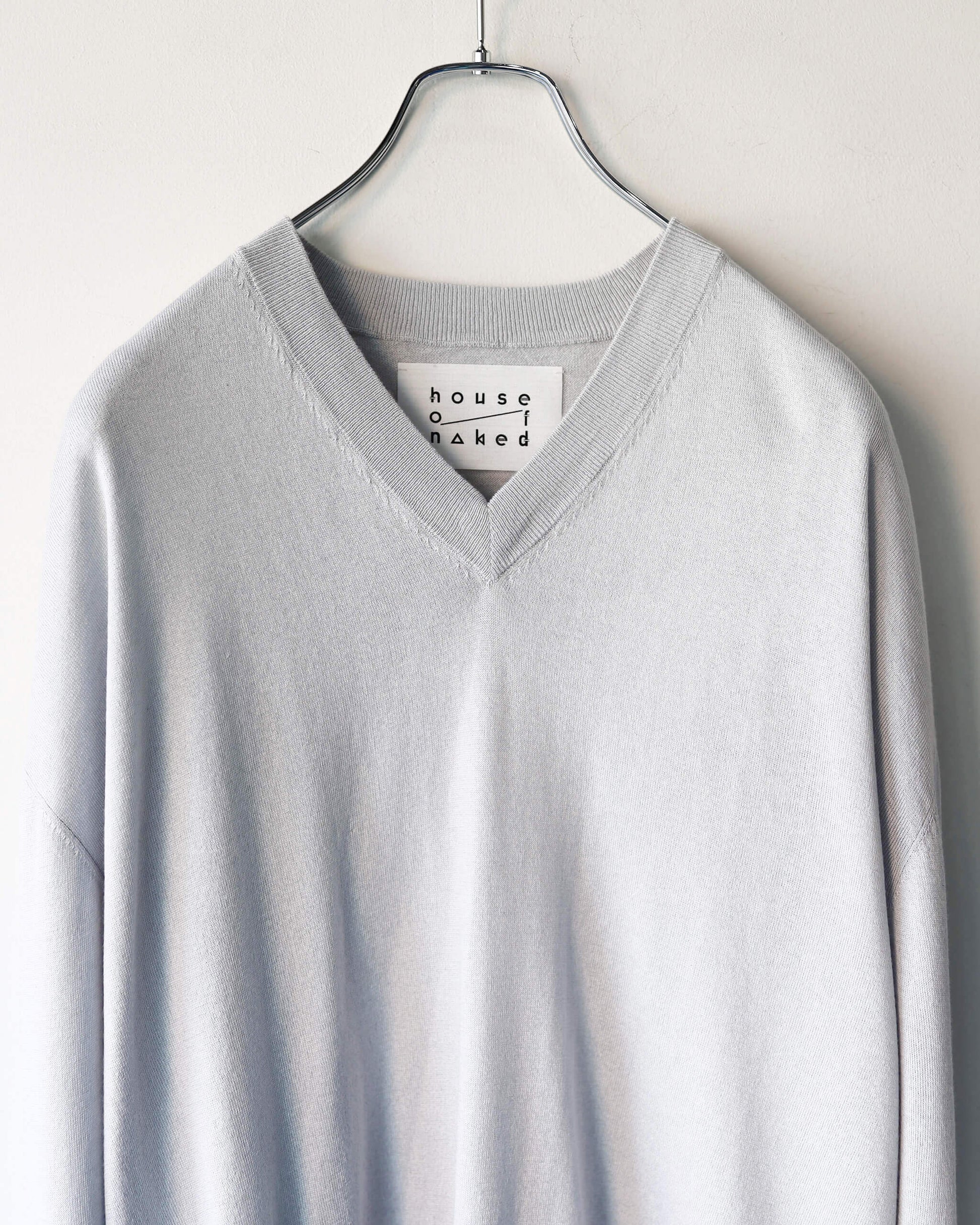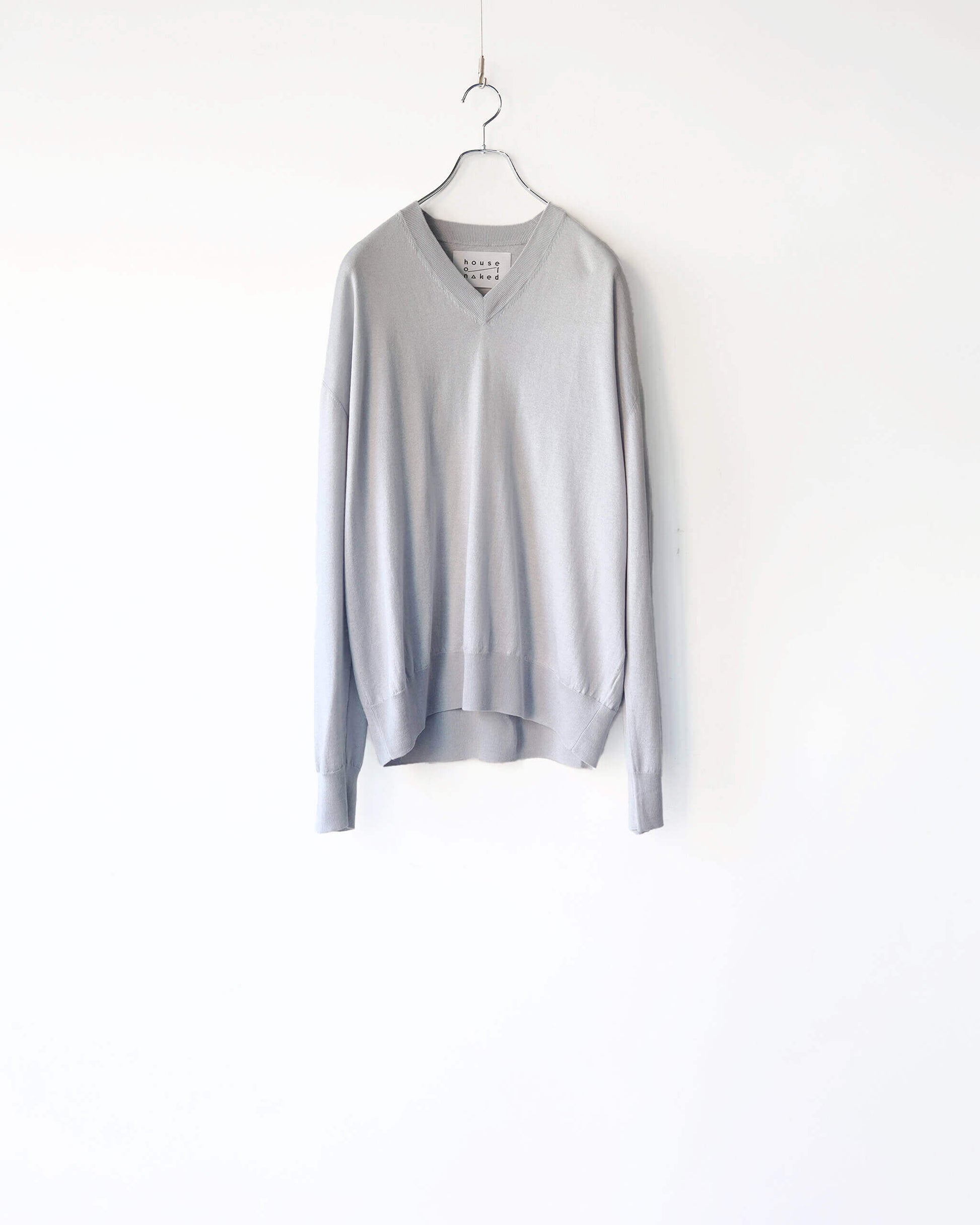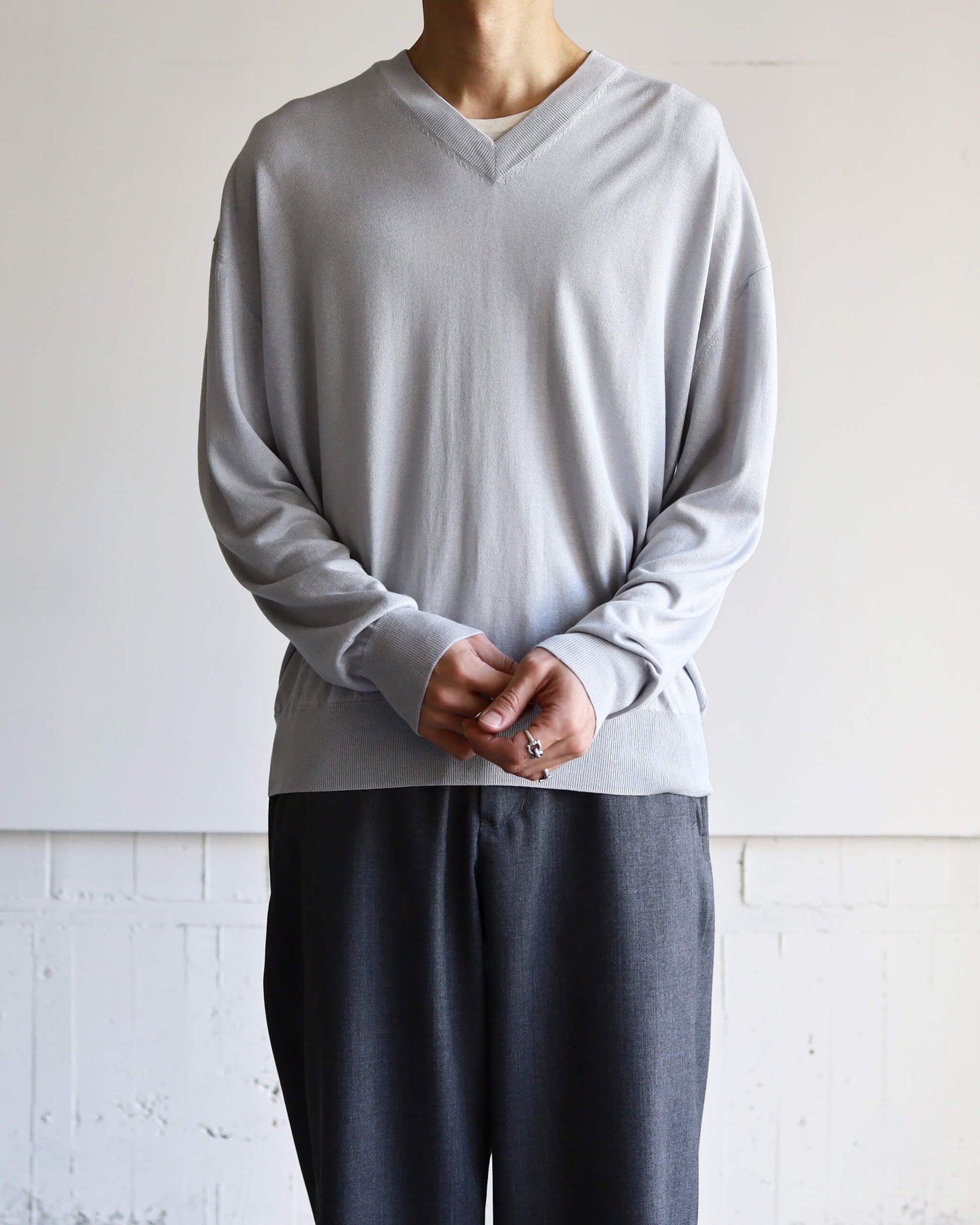 SILK x CASHMERE V-NECK KNIT "LIGHT GRAY"