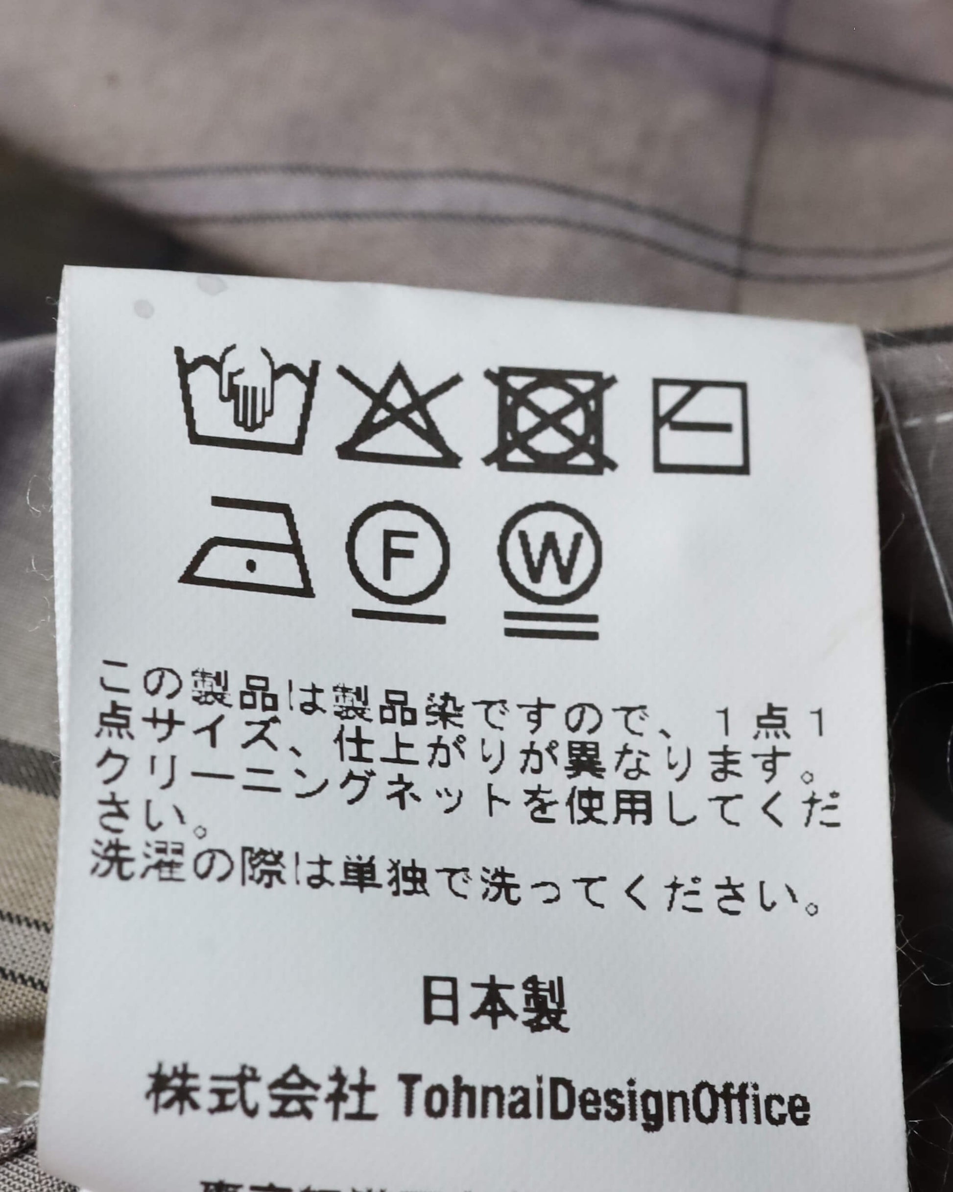 製品で手染めの加工を施し、落ち着いたチェック生地に独特な表情をプラス。