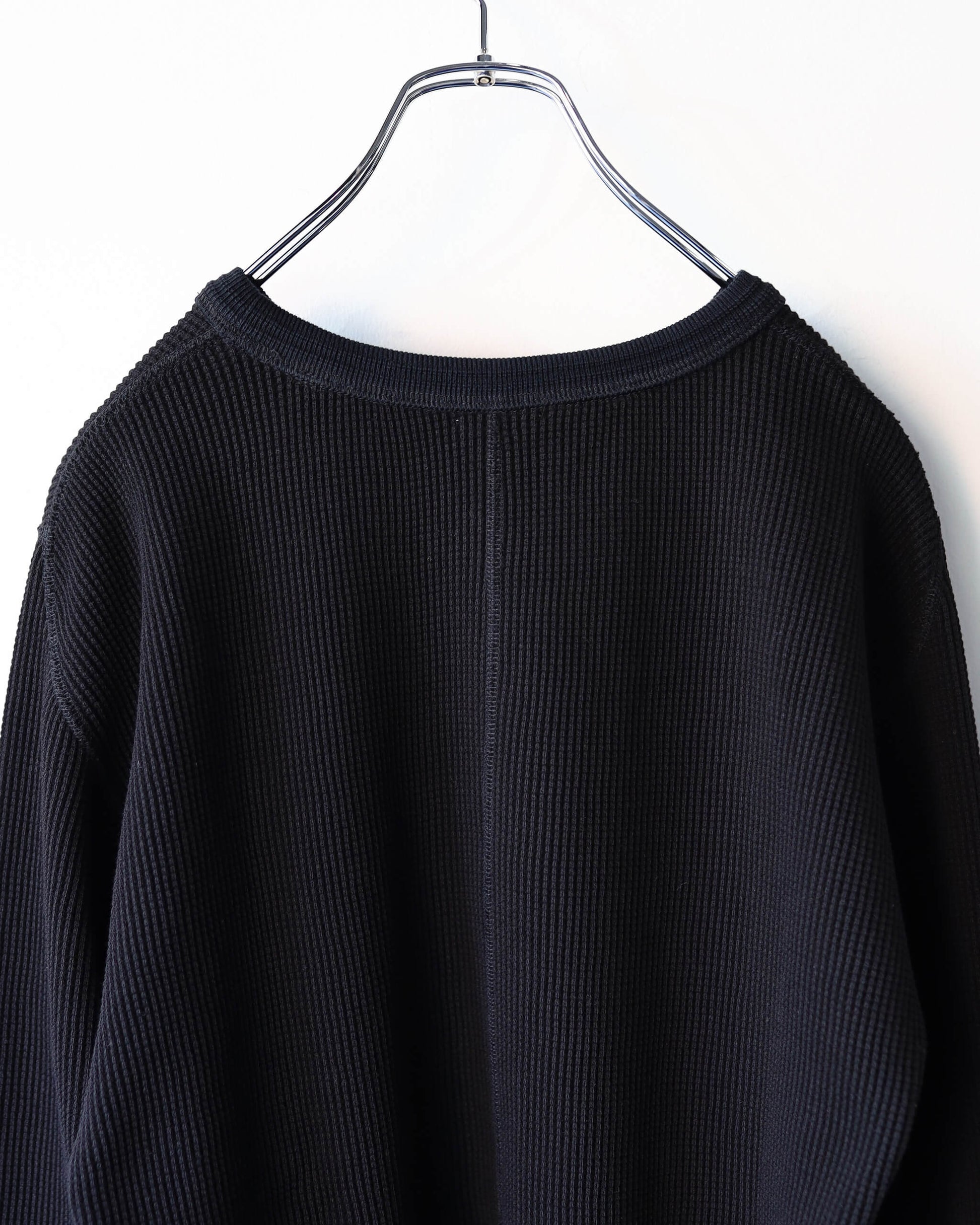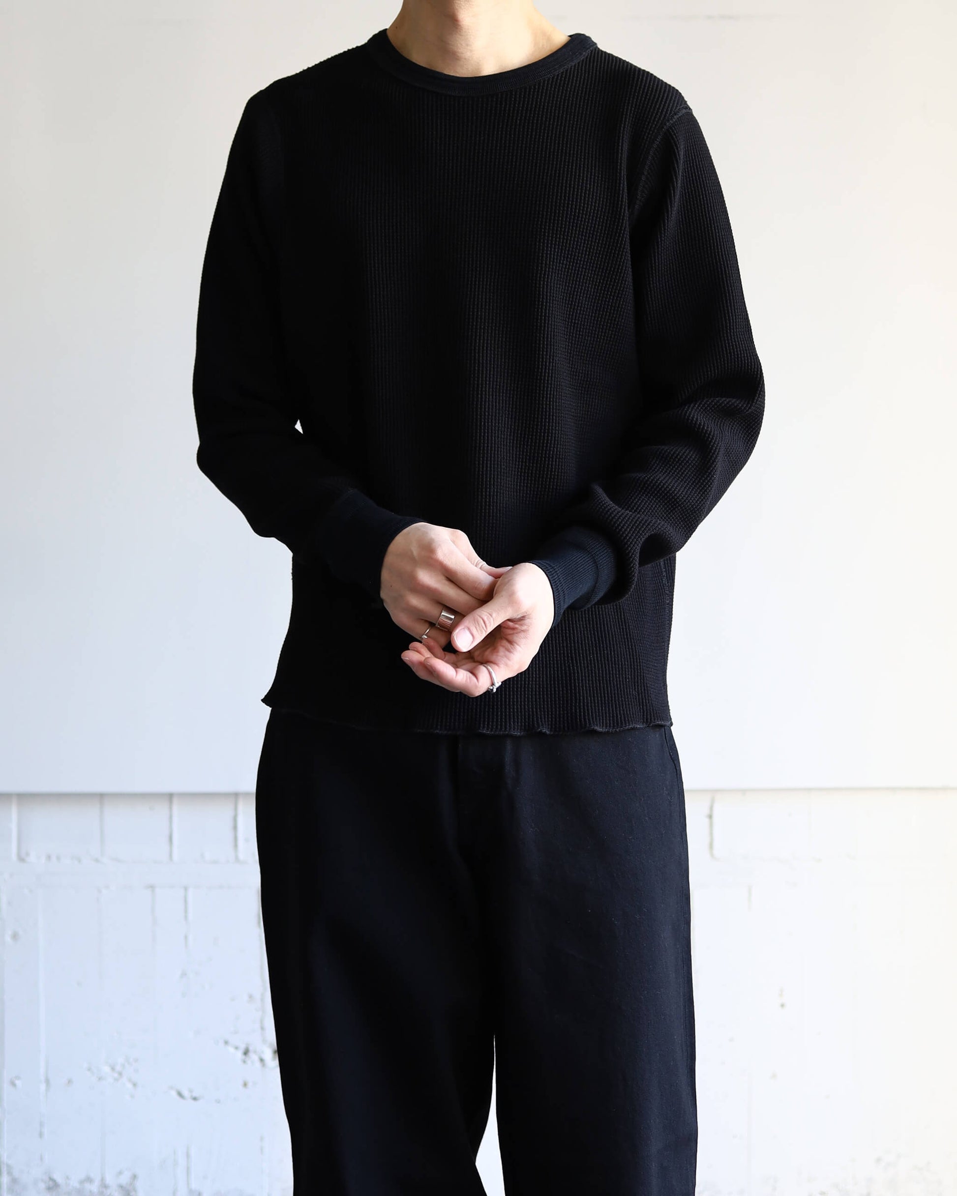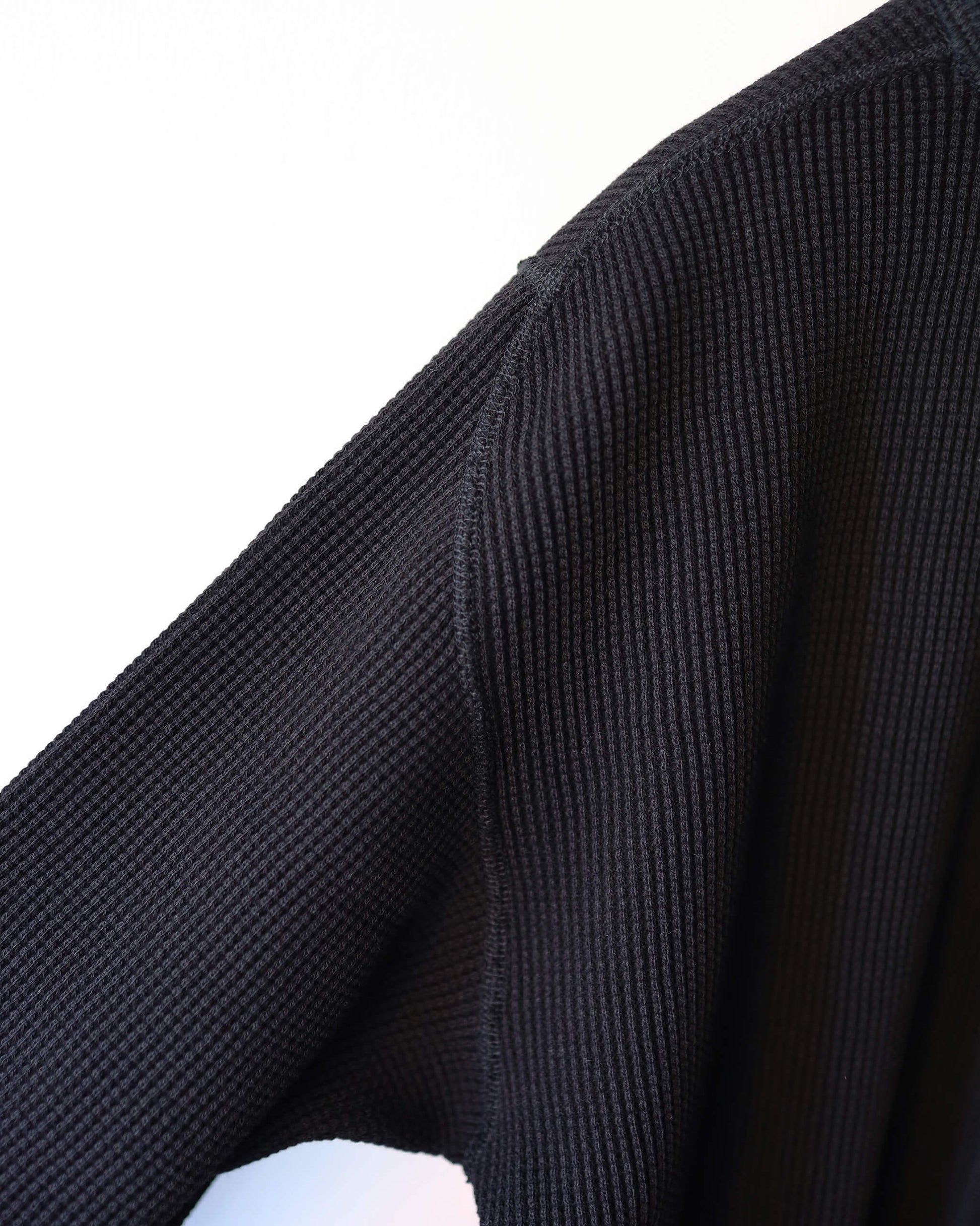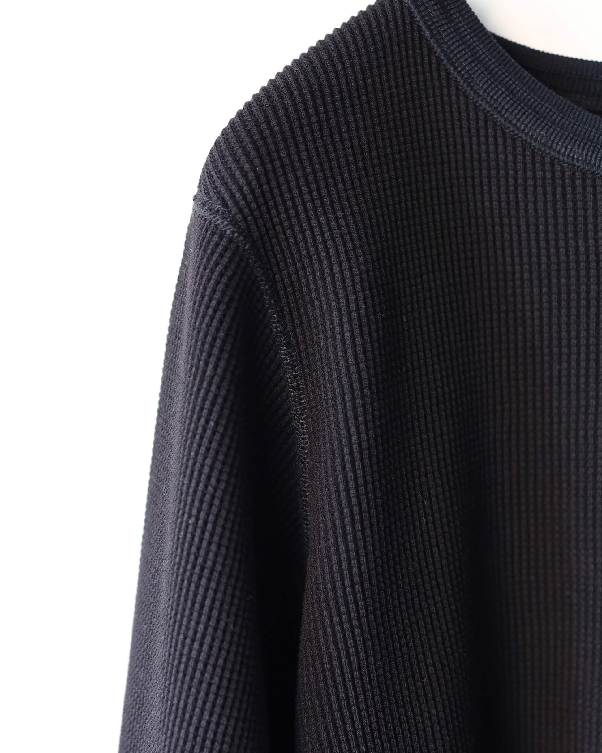 コットンワッフルにおける理想を追求し、番手から設計された引き揃え糸によって、目の立ち方・保温性・耐久性・肌あたりのすべてにおいて最適解を導き出した1枚です。