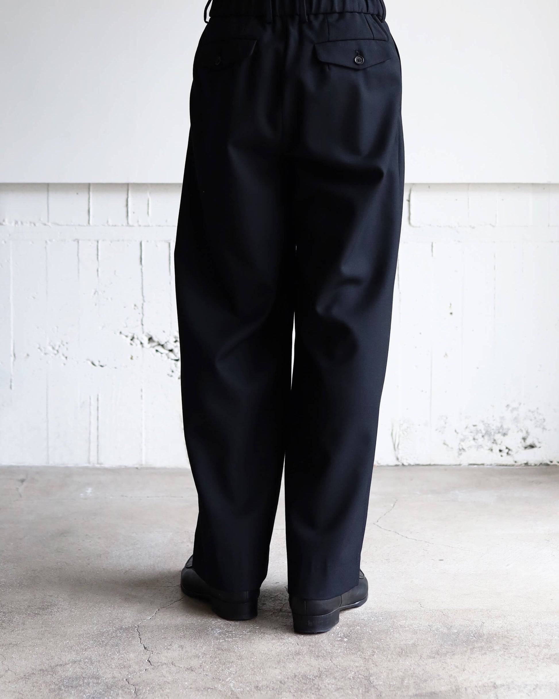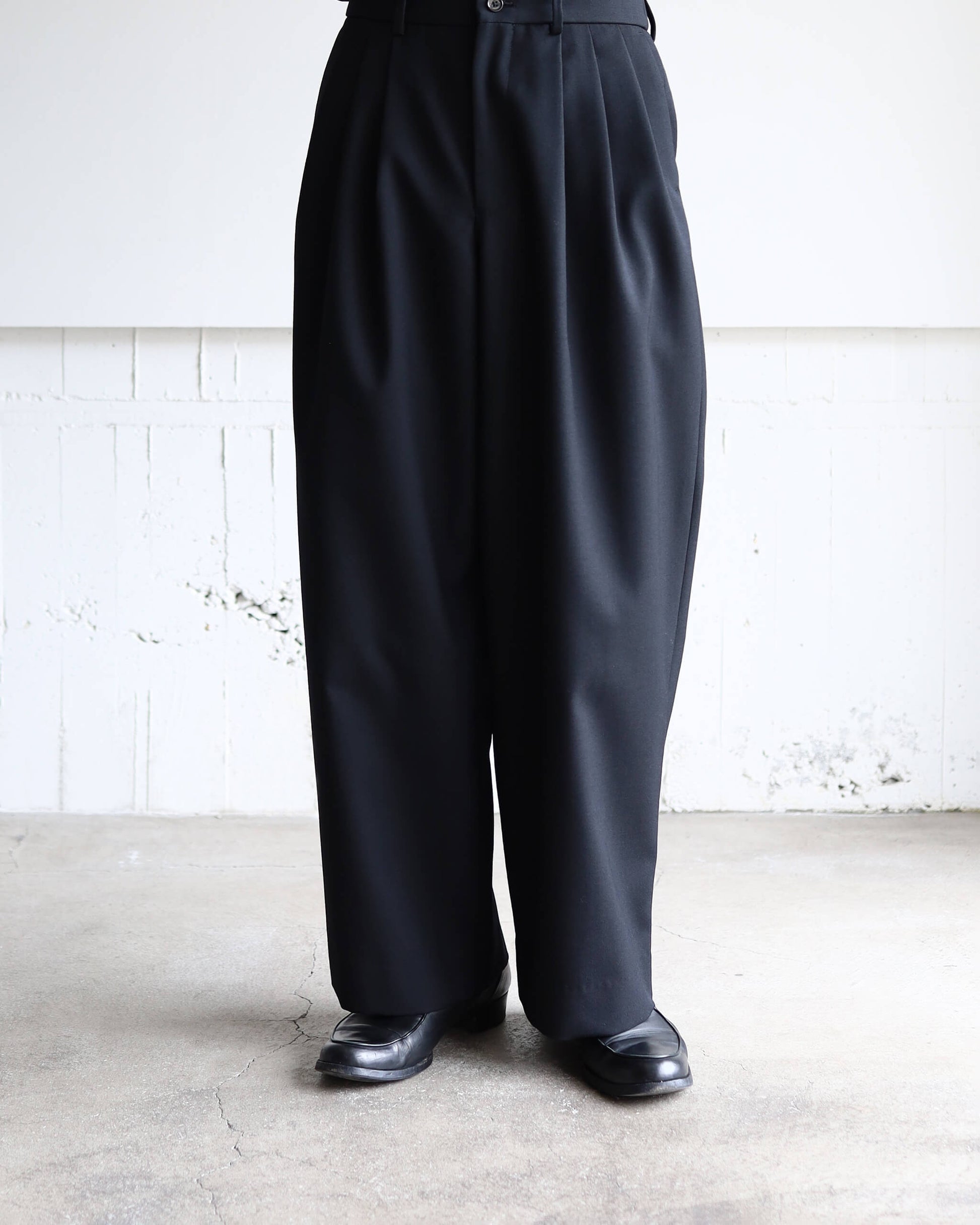 TRIPLE PLEATED WIDE TROUSERS ORGANIC WOOL SURVIVAL CLOTH®︎ "BLACK"